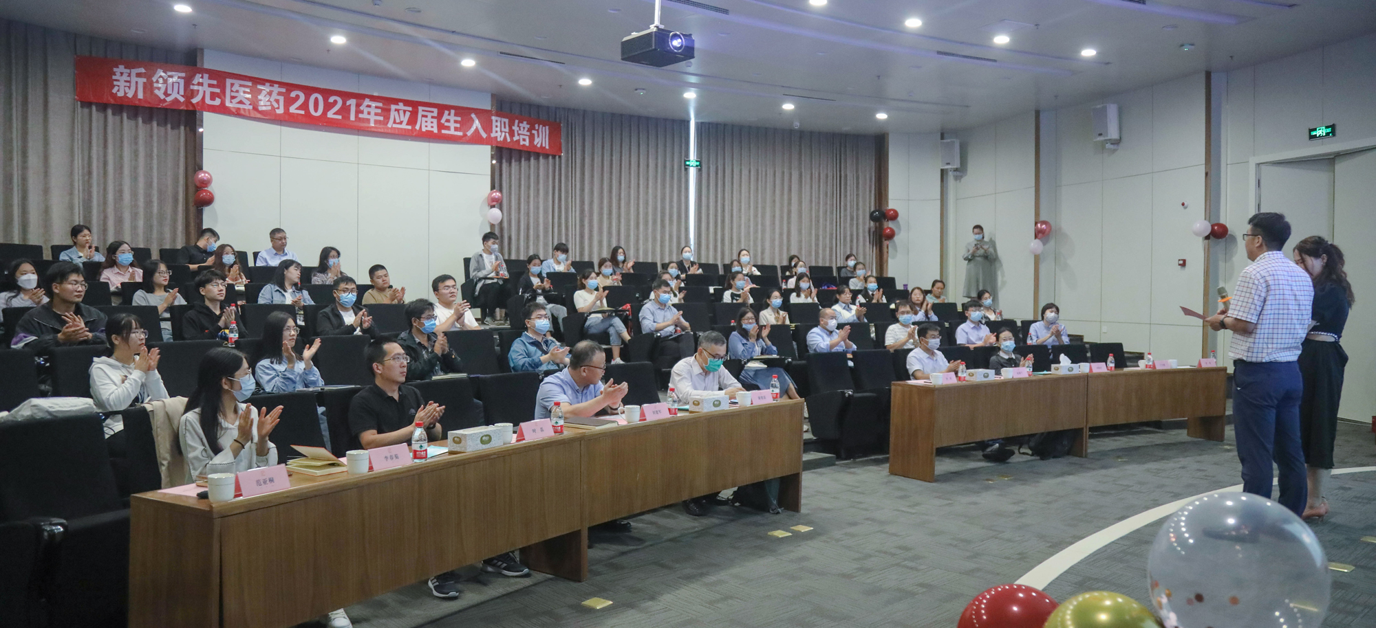 新領(lǐng)先醫(yī)藥2021年第二批應(yīng)屆生集中入職培訓(xùn)在鄭州生物醫(yī)藥園成功舉辦。新領(lǐng)先醫(yī)藥副總裁兼首席技術(shù)官康建磊先生、新領(lǐng)先研究院鄭州分院負(fù)責(zé)人趙德千先生、新領(lǐng)先研究院鄭州分院負(fù)責(zé)人兼QA經(jīng)理劉建軍先生、新領(lǐng)先研究院鄭州分院負(fù)責(zé)人兼行政總監(jiān)賈琪女士等眾多高管及鄭州臨空生物醫(yī)藥園董事長鐘南博士出席了現(xiàn)場儀式,新領(lǐng)先醫(yī)藥董事長陶新華先生、總裁高世靜女士、副總裁董穎女士通過云視頻與新員工進(jìn)行互動和交流。
