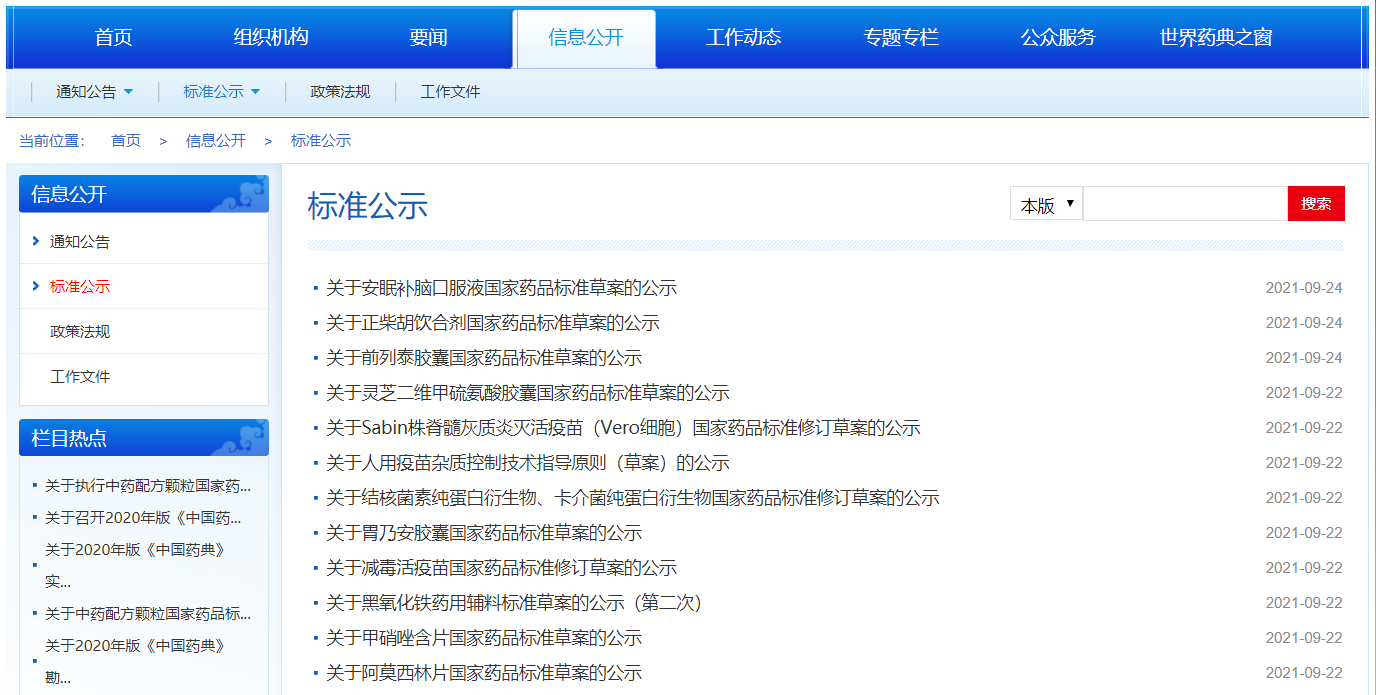 本周發(fā)布10種國家藥品標(biāo)準(zhǔn)草案,1種藥用輔料標(biāo)準(zhǔn)草案以及人用疫苗雜質(zhì)控制技術(shù)指導(dǎo)原則(草案)。