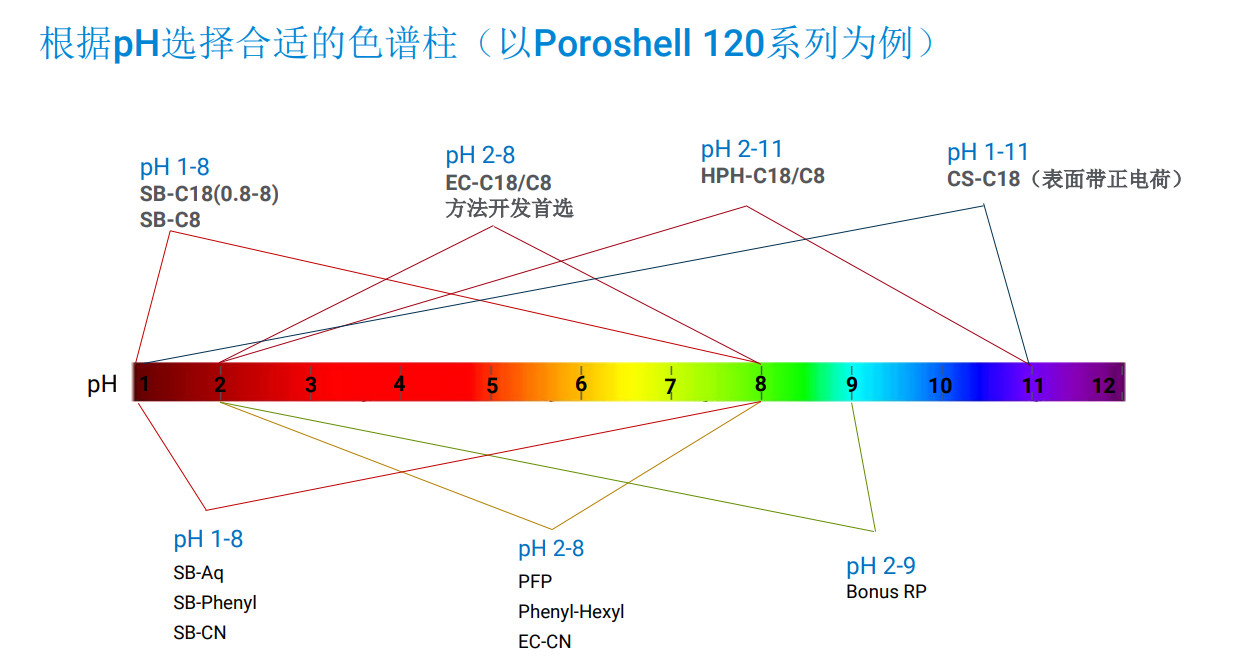 根據(jù)pH選擇合適的色譜柱(以Poroshell 120系列為例)