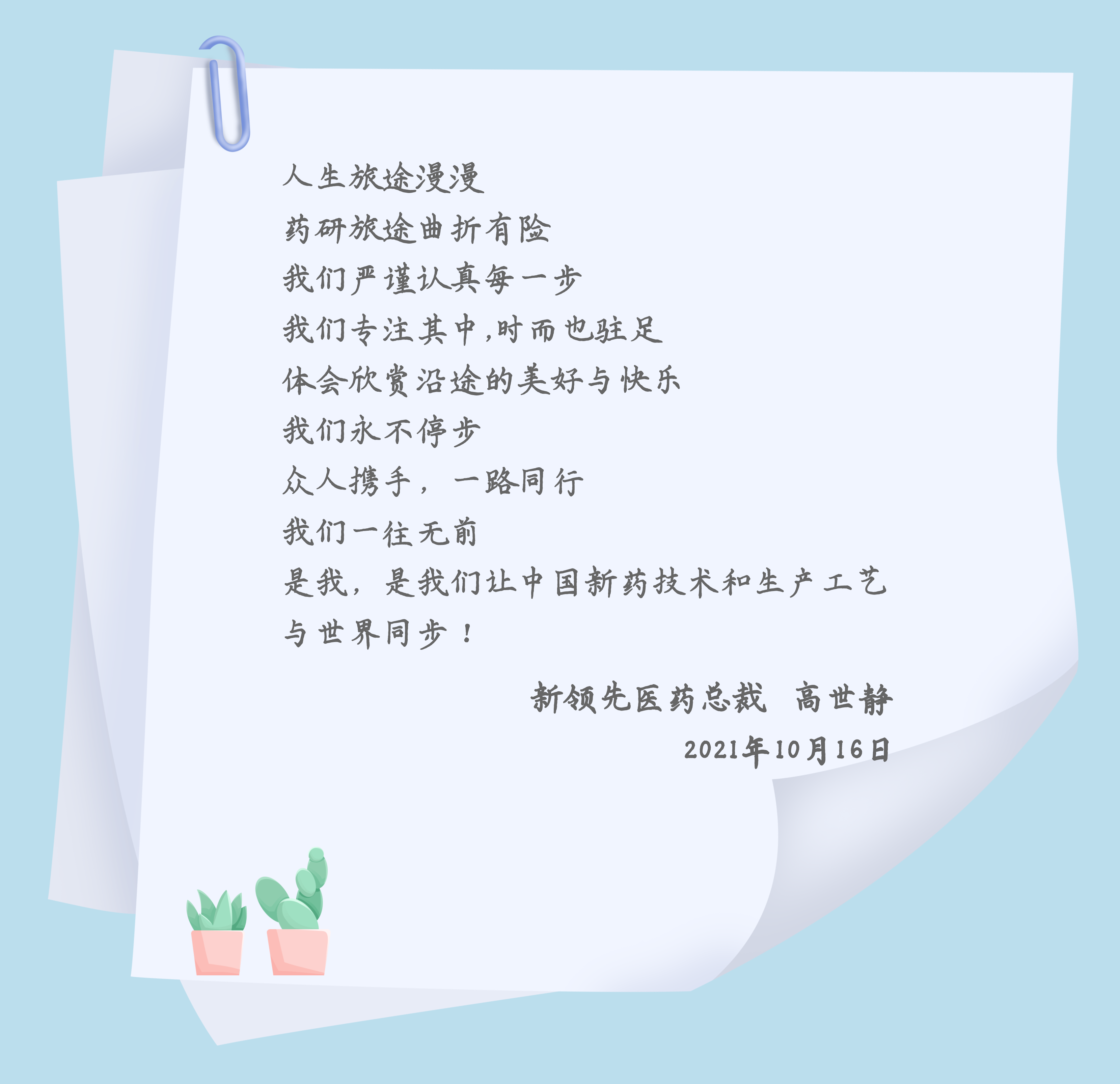 我們從事的是醫(yī)藥健康事業(yè),更要有健康的體魄和精神,新領(lǐng)先人始終秉承越山向海的精神,在藥品研發(fā)過程中堅韌不拔、攻堅克難,向著目標(biāo),一往無前,為健康中國戰(zhàn)略貢獻(xiàn)自己的力量;同時,我們也希望通過本次徒步活動,鼓勵大家親近自然,強(qiáng)健體魄,以積極、陽光、向上的心態(tài)面對生活,面對工作,讓我們一起做“體面的新領(lǐng)先人”!