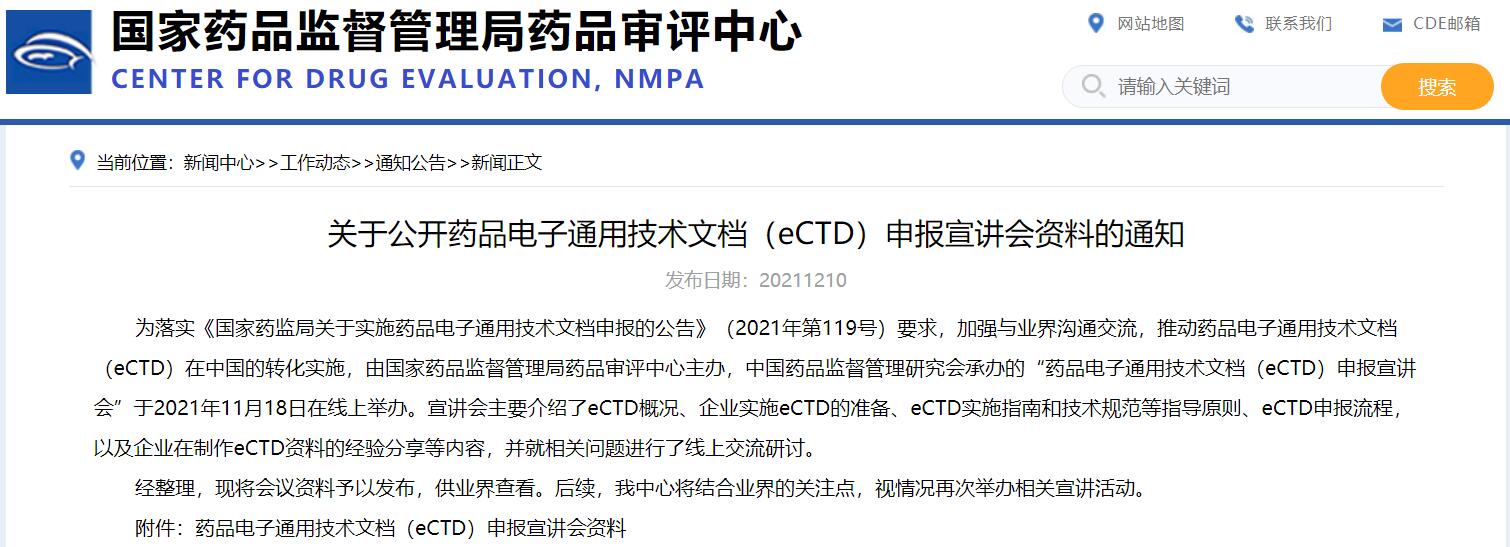 關(guān)于公開藥品電子通用技術(shù)文檔(eCTD)申報宣講會資料的通知