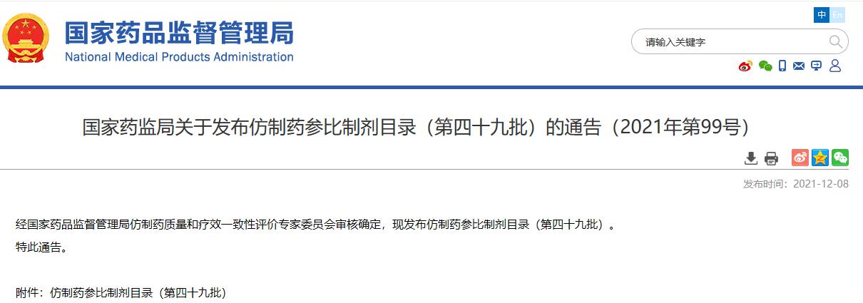 國家藥監(jiān)局關(guān)于發(fā)布仿制藥參比制劑目錄(第四十九批)的通告(2021年第99號)