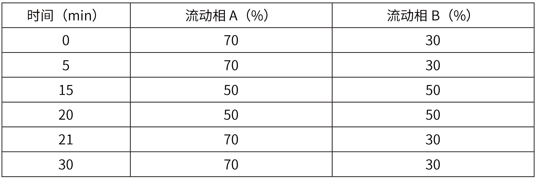 2)流動相A:10mmol/L磷酸二氫鉀溶液和2.5mmol/L庚烷磺酸鈉溶液(取磷酸二氫鉀1.36g,1-庚烷磺酸鈉0.51g,加水1000ml使溶解,用磷酸調(diào)節(jié)pH值至4.5)
