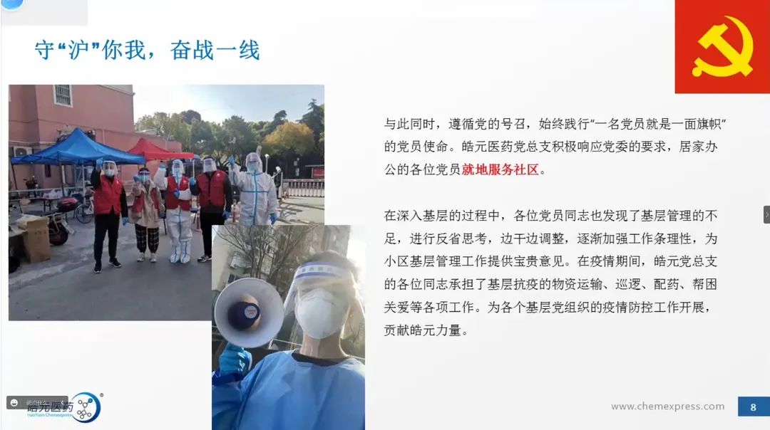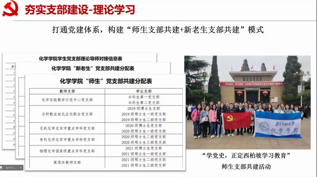 北京新領先、上海皓元、北師大化學學院分別作《筑堅強堡壘 樹領先形象》、《“疫”線有我,守“滬”你我 》、《黨建引領謀發(fā)展 凝心聚力創(chuàng)一流》黨建工作匯報,圍繞黨委作用發(fā)揮、基層黨支部建設、黨員思想政治學習教育、校企文化、隊伍建設等方面進行了深入溝通交流。