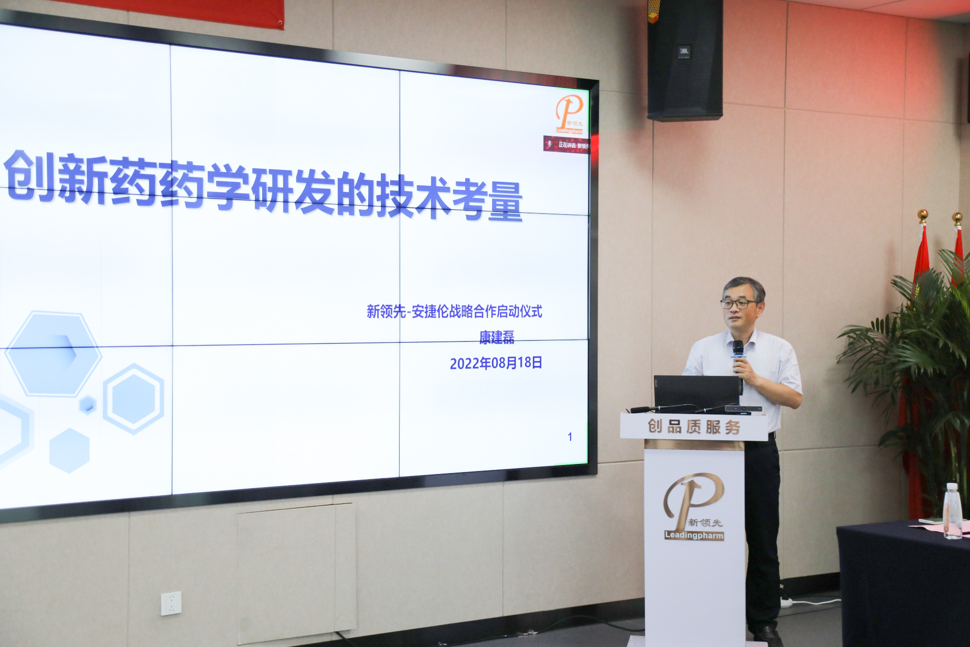 新領(lǐng)先副總裁兼首席技術(shù)官康建磊先生作《創(chuàng)新藥研發(fā)的藥學(xué)研究策略》主題報告。