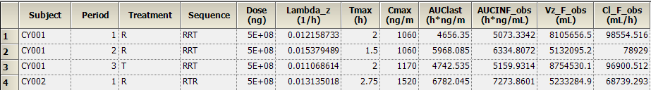 獲得預(yù)BE試驗(yàn)原始數(shù)據(jù)(給藥后不同采血點(diǎn)的血藥濃度)后, WinNonlin軟件可首先協(xié)助我們進(jìn)行生物等效性結(jié)果的計(jì)算: