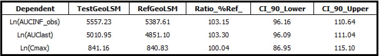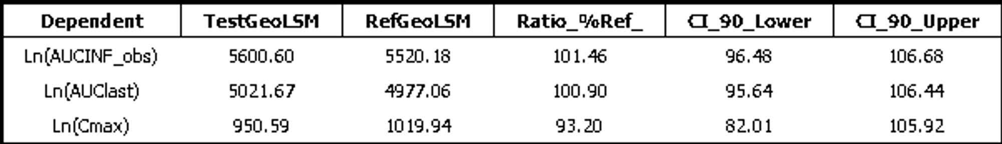 按照以上方案我司進(jìn)行了正式BE試驗(yàn),順利地通過(guò)本品的一致性評(píng)價(jià),最終BE等效性數(shù)據(jù)如下: