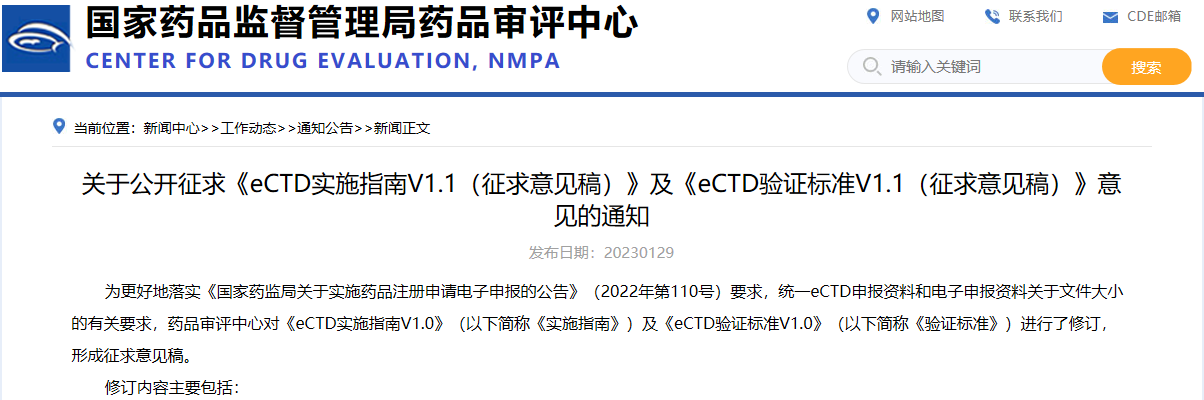 關(guān)于公開(kāi)征求《eCTD實(shí)施指南V1.1(征求意見(jiàn)稿)》及《eCTD驗(yàn)證標(biāo)準(zhǔn)V1.1(征求意見(jiàn)稿)》意見(jiàn)的通知