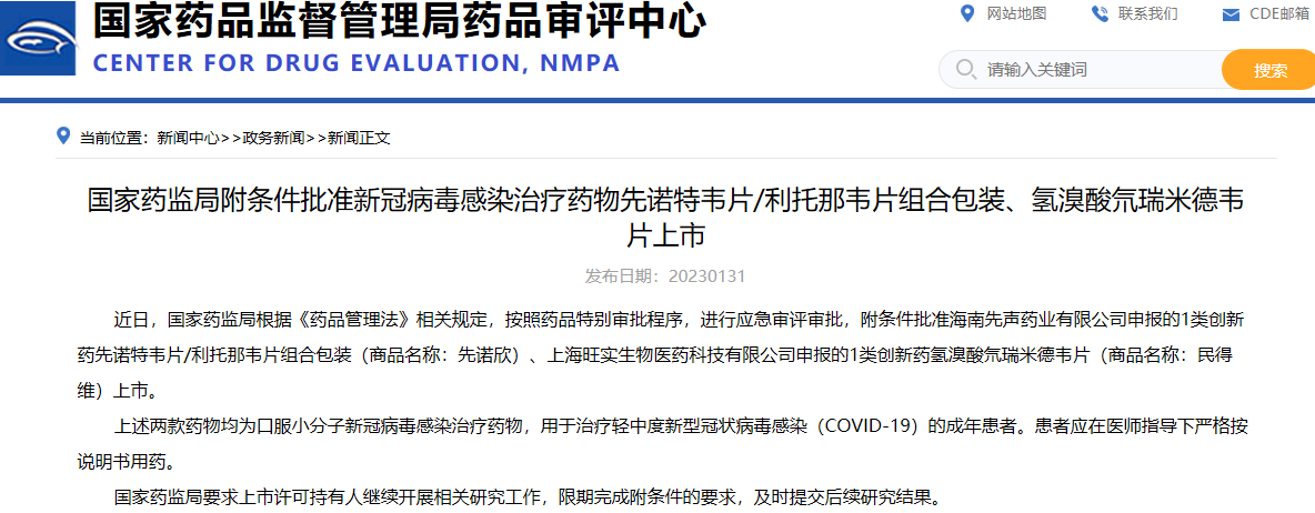 國(guó)家藥監(jiān)局附條件批準(zhǔn)新冠病毒感染治療藥物先諾特韋片/利托那韋片組合包裝、氫溴酸氘瑞米德韋片上市