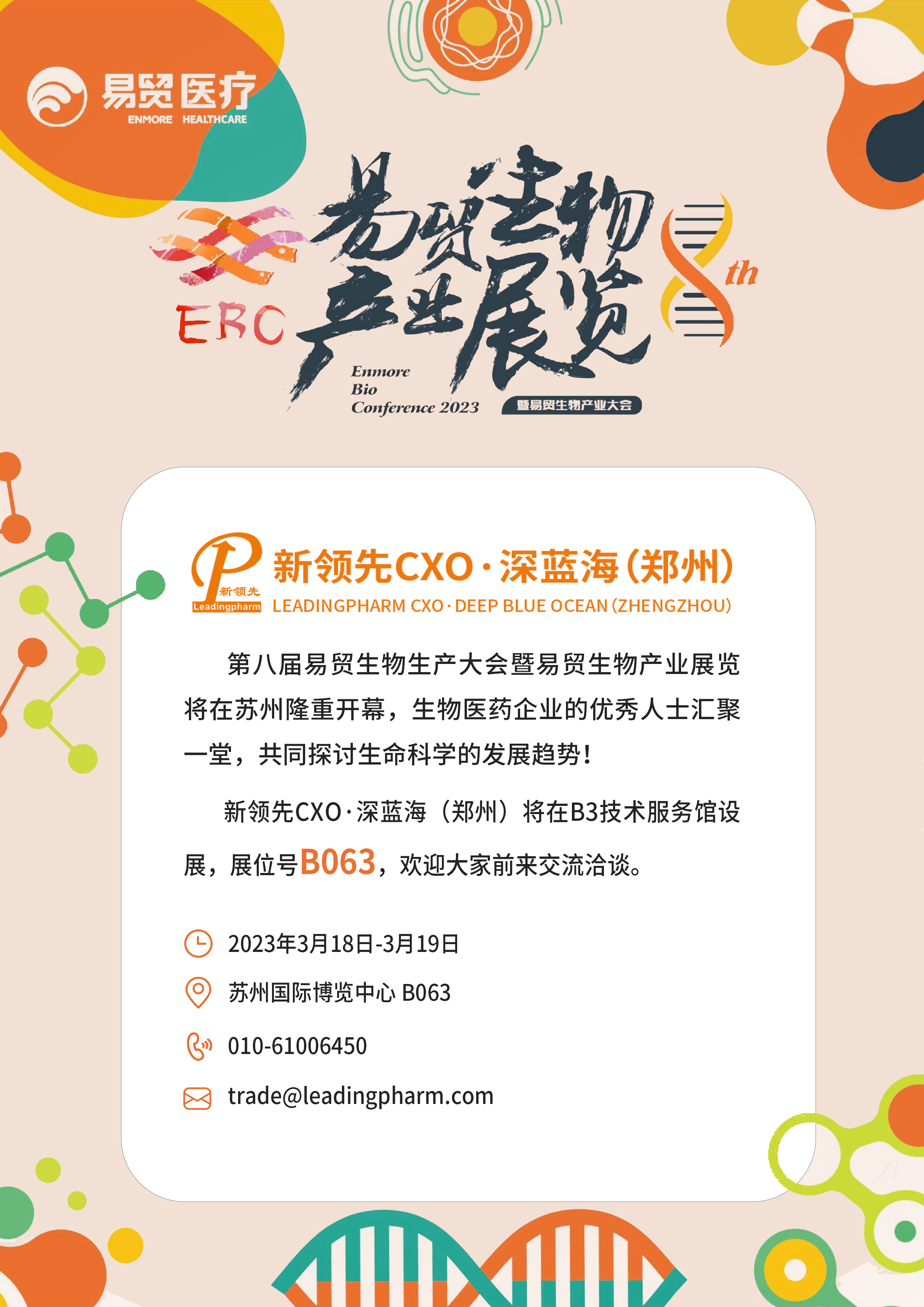 新藥創(chuàng)制全程合作伙伴——新領(lǐng)先CXO·深藍(lán)海(鄭州)與您相約第八屆易貿(mào)生物生產(chǎn)大會(huì)