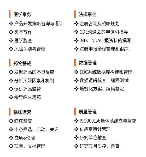旗下?lián)碛?00余人的專業(yè)臨床服務(wù)團(tuán)隊(duì),下設(shè)醫(yī)學(xué)部、臨床運(yùn)營(yíng)部、數(shù)據(jù)部、藥物警戒部、質(zhì)量控制委員會(huì)、藥政部、項(xiàng)目管理部、上會(huì)管理中心等部門(mén),項(xiàng)目全面覆蓋生物藥、化藥、中藥、醫(yī)療器械、細(xì)胞與基因治療等藥物、滿足不同研發(fā)型企業(yè)的臨床研究定制需求,為國(guó)內(nèi)外客戶打通新藥上市前關(guān)鍵瓶頸。