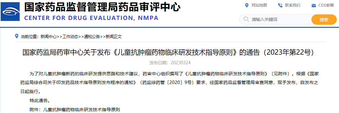 國家藥監(jiān)局藥審中心關(guān)于發(fā)布《兒童抗腫瘤藥物臨床研發(fā)技術(shù)指導(dǎo)原則》的通告(2023年第22號)