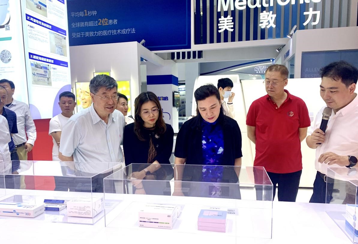 ▲ 考察團(tuán)參觀博鰲樂城先行區(qū)“永不落幕”國際創(chuàng)新藥械展