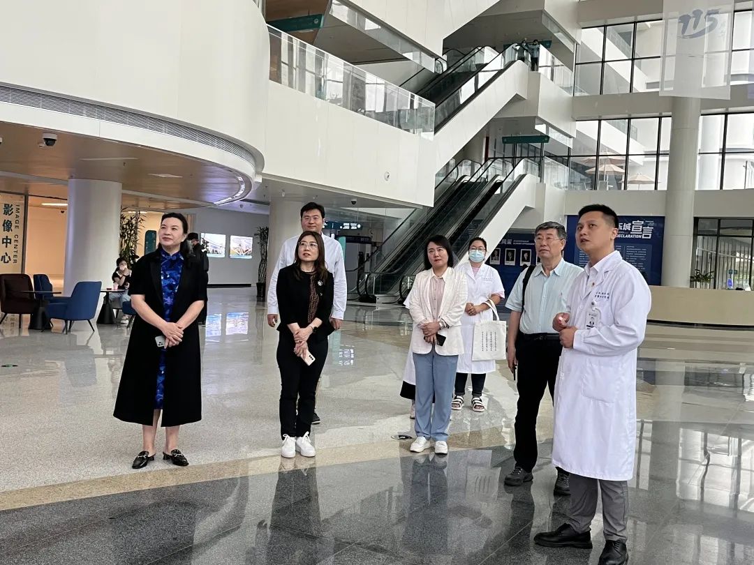 ▲瑞金海南醫(yī)院吳顯輝副院長帶領(lǐng)參觀介紹