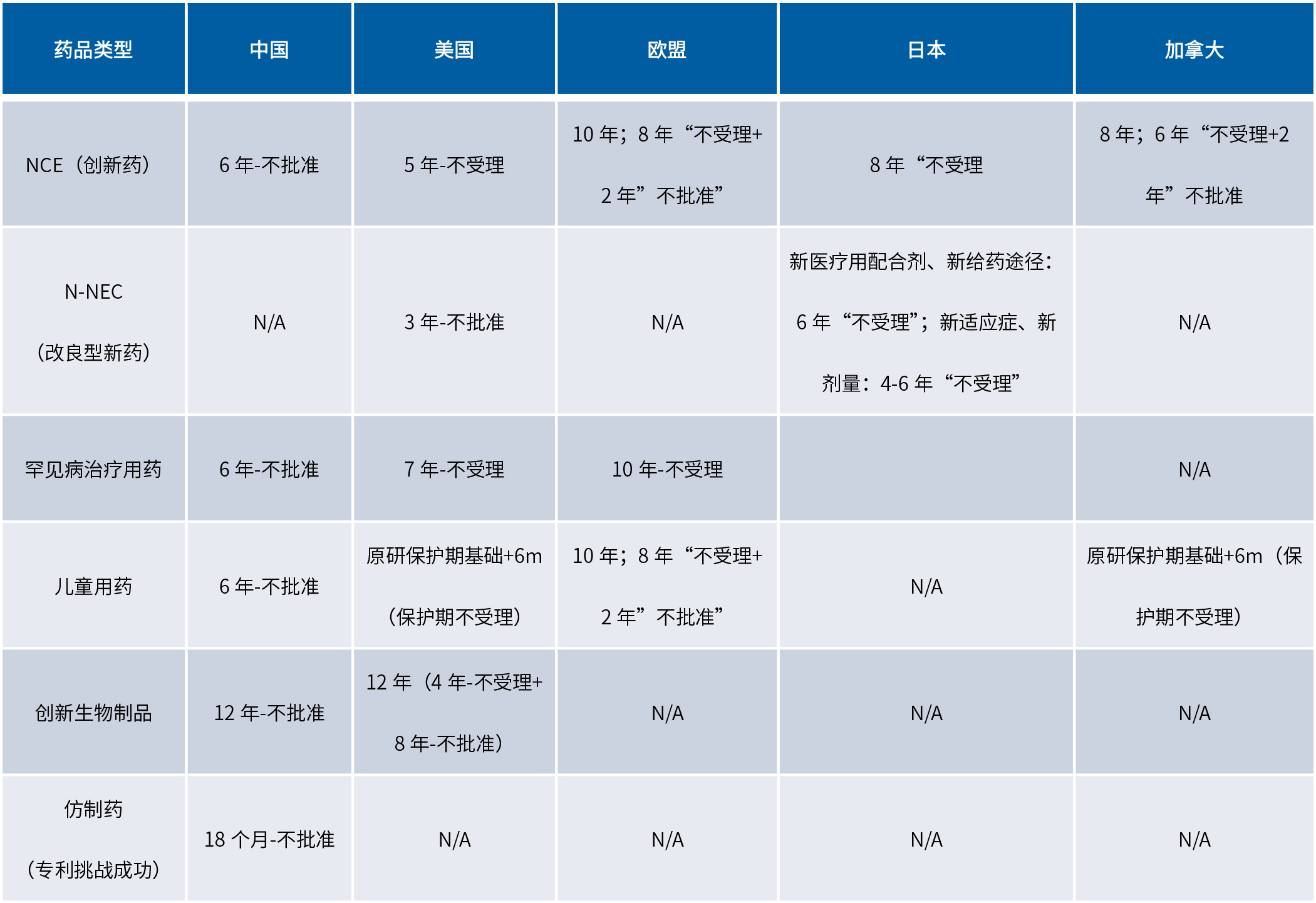 加拿大數(shù)據(jù)保護(hù)制度針對(duì)創(chuàng)新藥,具有新適應(yīng)癥、新劑型的藥品補(bǔ)充申請(qǐng)則無(wú)法獲得保護(hù)。