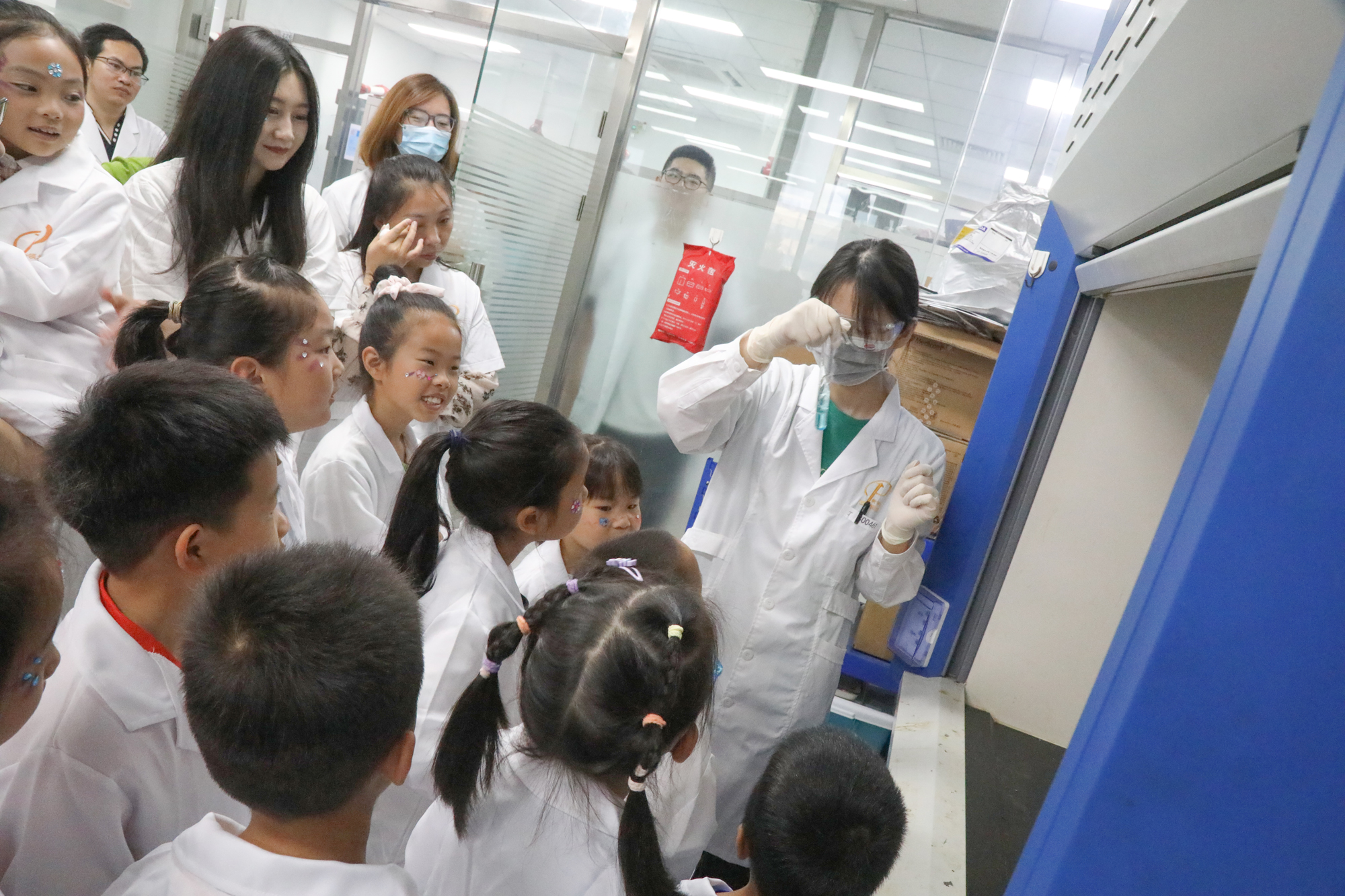 ▲ 參觀爸爸媽媽工作的地方,小朋友們聚精會神,感受實驗的神奇