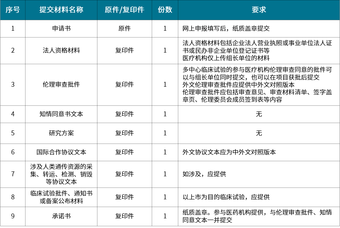 ▲ 國際合作臨床試驗備案材料清單