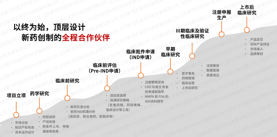 依托于新領先CXO服務體系,創(chuàng)建了“交互式”臨床服務模式,在項目立項階段全面介入,做新藥創(chuàng)制的全程合作伙伴,整合醫(yī)學、藥政、藥學研發(fā)等技術專家進行頂層設計,最大限度降低項目研發(fā)風險。同時,成立專項政府引導基金,為創(chuàng)新項目提供不同階段的投融資,最大程度加速藥品上市進程。此外,強大的定量藥理學及體內(nèi)外橋接團隊針對特定疾病和特定人群進行數(shù)字模型研究,制定科學高質(zhì)的臨床研究方案,提高新藥臨床開發(fā)效率。