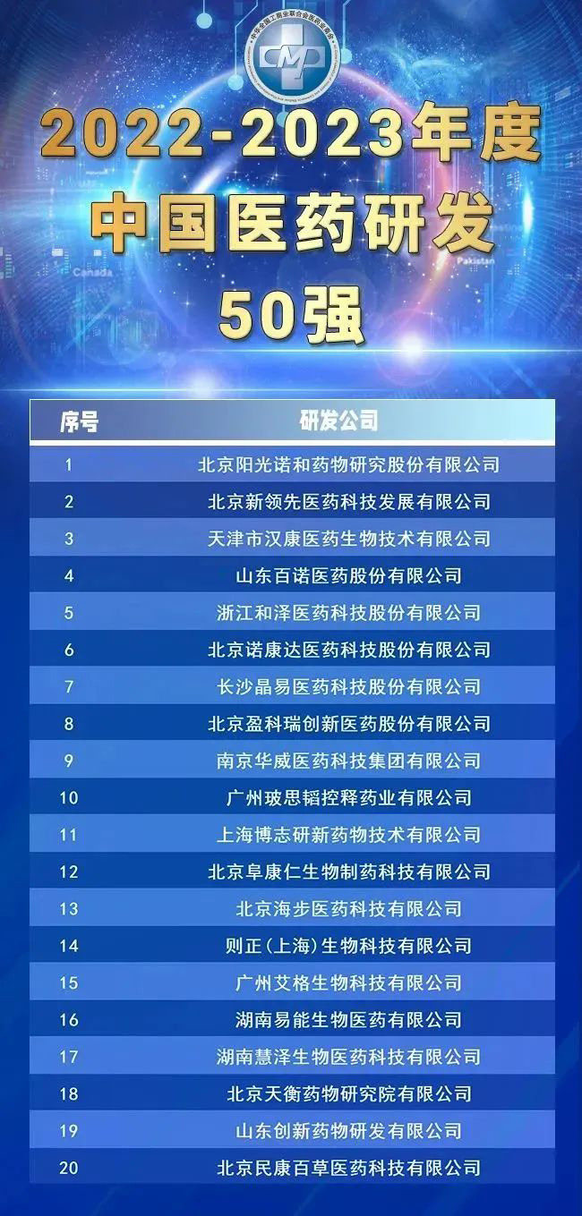 榜單發(fā)布 | 新領(lǐng)先醫(yī)藥連續(xù)八年蟬聯(lián)“中國醫(yī)藥研發(fā)50強”前三甲