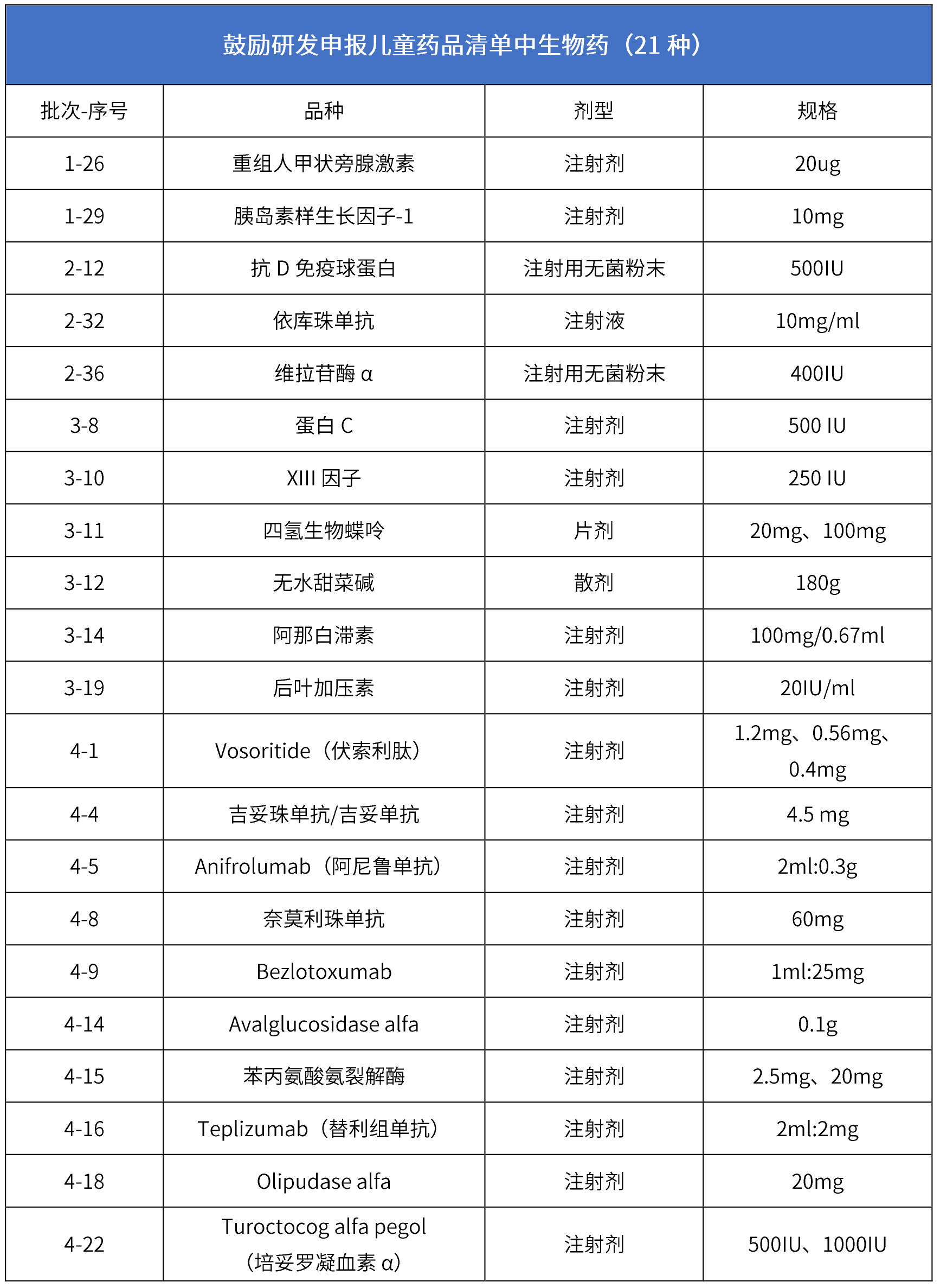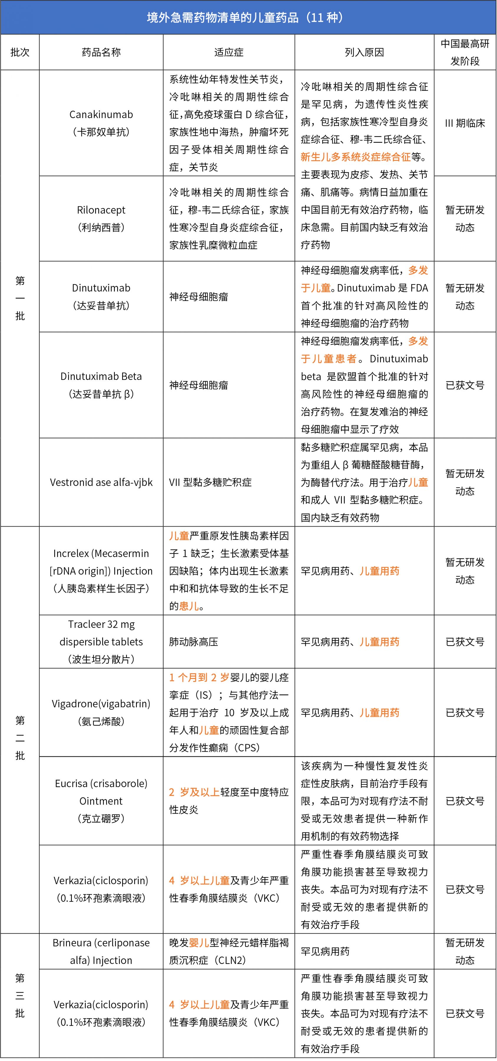 2、境外急需兒藥品種