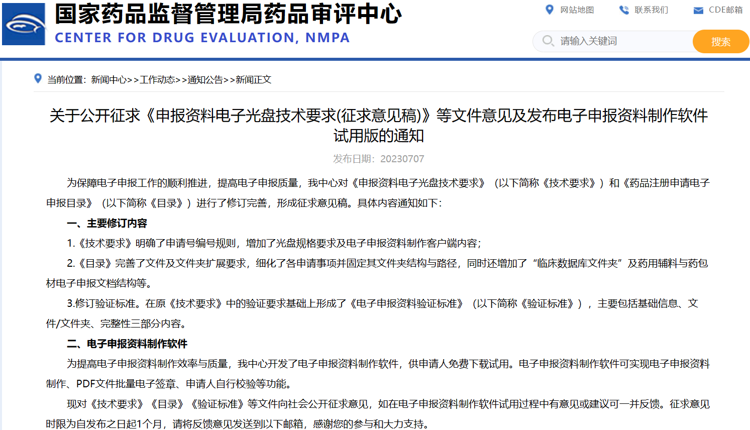 關(guān)于公開征求《申報(bào)資料電子光盤技術(shù)要求(征求意見稿)》等文件意見及發(fā)布電子申報(bào)資料制作軟件試用版的通知