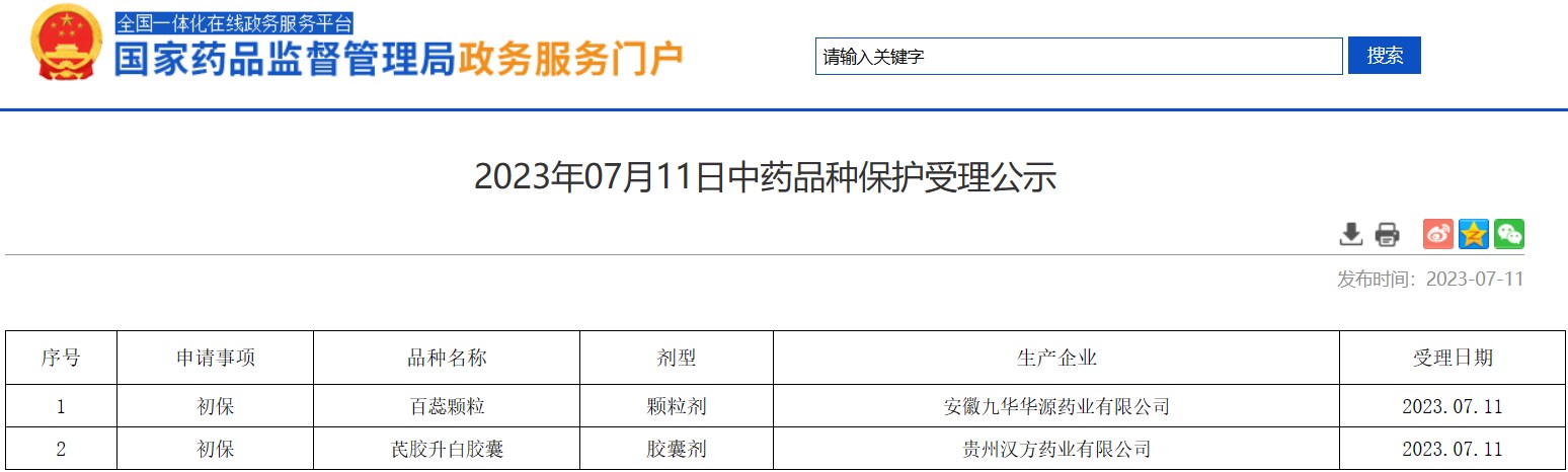 2023年07月11日中藥品種保護(hù)受理公示