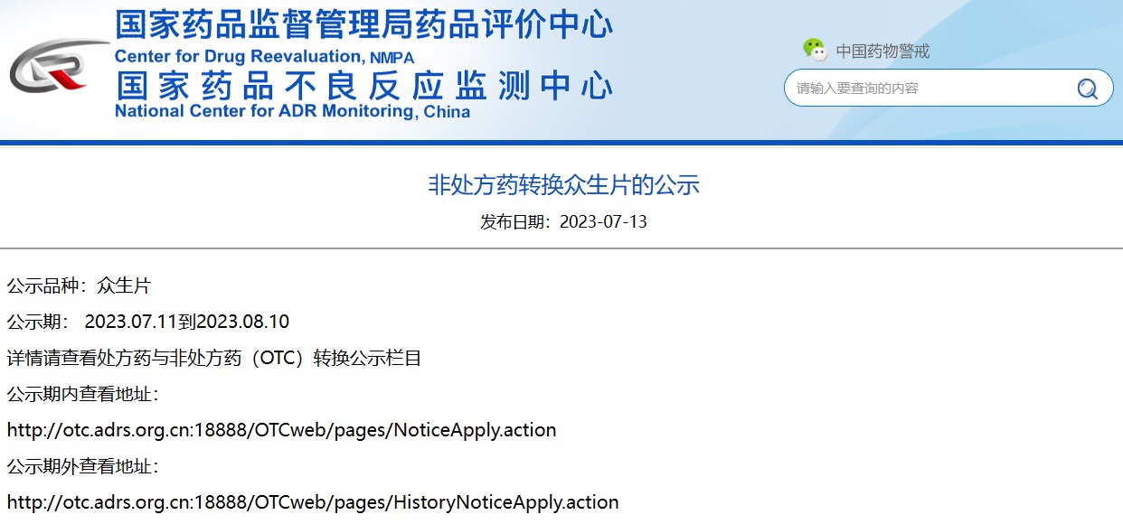 非處方藥轉(zhuǎn)換眾生片的公示
