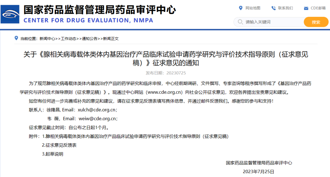 關(guān)于《腺相關(guān)病毒載體類體內(nèi)基因治療產(chǎn)品臨床試驗申請藥學(xué)研究與評價技術(shù)指導(dǎo)原則(征求意見稿)》征求意見的通知