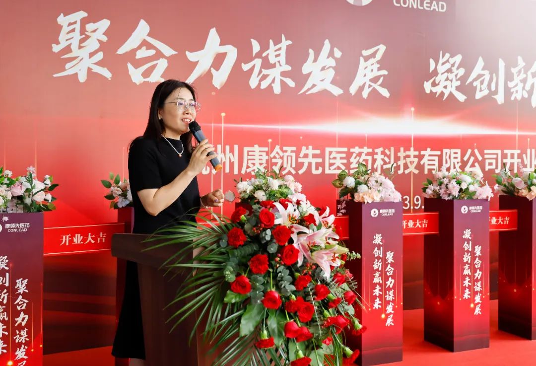 在開業(yè)儀式上,新領先醫(yī)藥總裁、康領先醫(yī)藥總經(jīng)理高世靜女士首先對蒞臨儀式的各位領導、專家表示熱烈歡迎,對杭州蕭山區(qū)臨空經(jīng)濟示范區(qū)各級政府領導以及吉華產(chǎn)業(yè)園相關領導的大力支持表示深深的感謝。高總表示,新領先醫(yī)藥和葫蘆娃藥業(yè)擁有相同的理念和愿景,雙方的融合,將充分發(fā)揮葫蘆娃藥業(yè)豐富的兒科用藥產(chǎn)品布局、高效可持續(xù)的產(chǎn)銷體系和新領先醫(yī)藥CXO全產(chǎn)業(yè)鏈布局、深厚的研發(fā)積淀,迸發(fā)出超強活力。