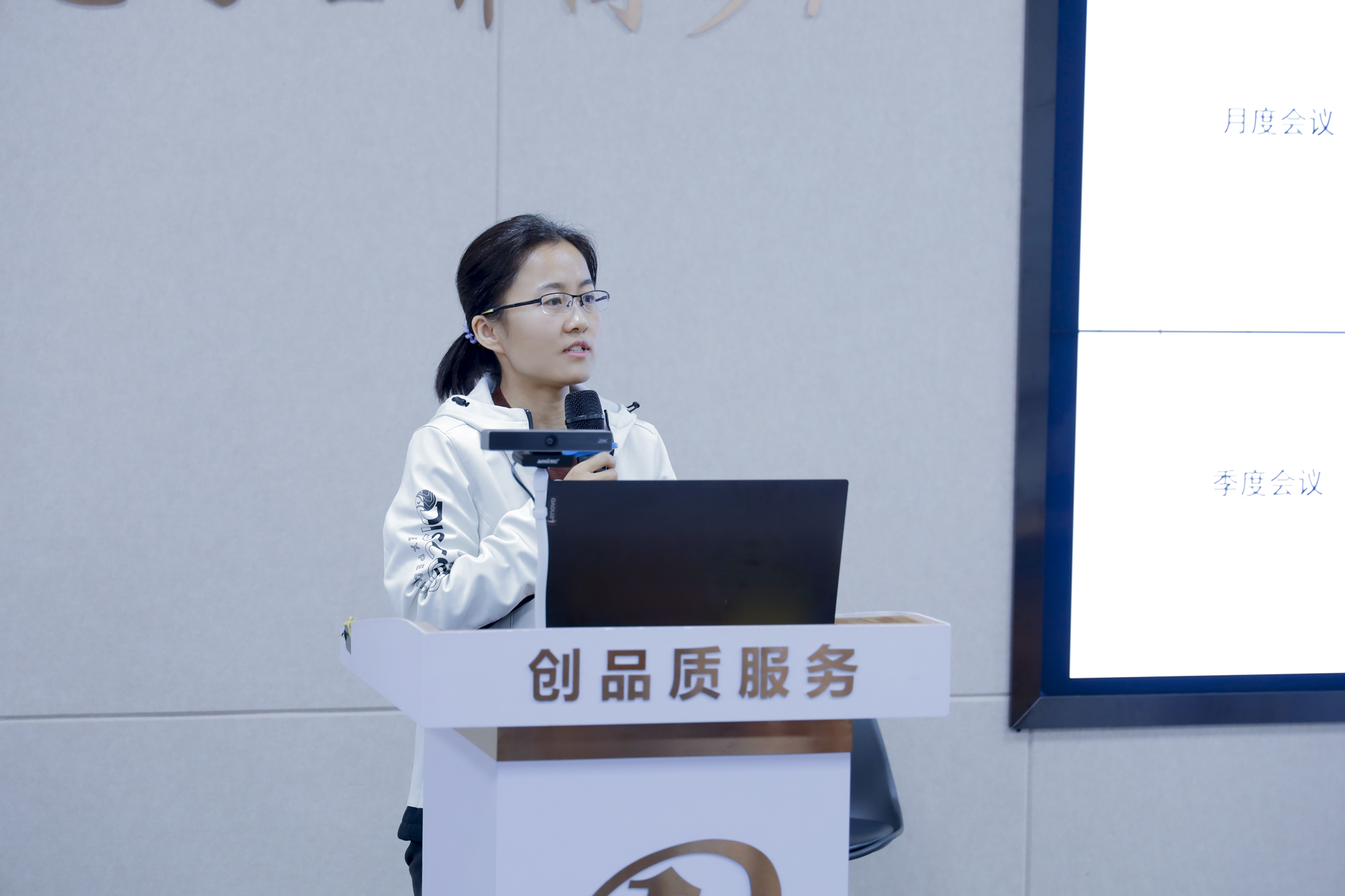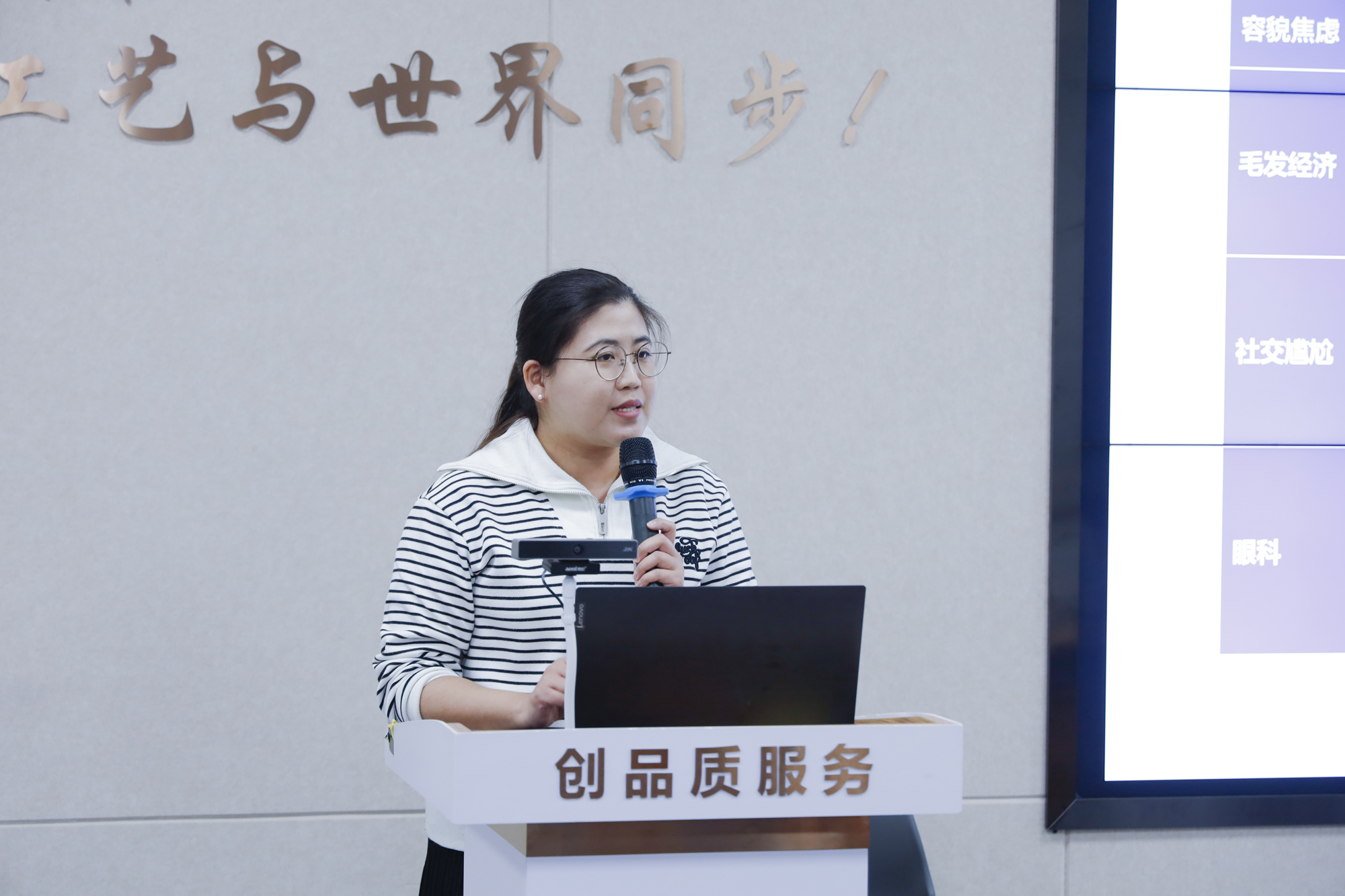 ▲新領(lǐng)先總裁助理兼綜合信息部總監(jiān)劉芳女士(左)、藥酚享李媛老師(右)分別代表雙方作工作總結(jié)匯報(bào)