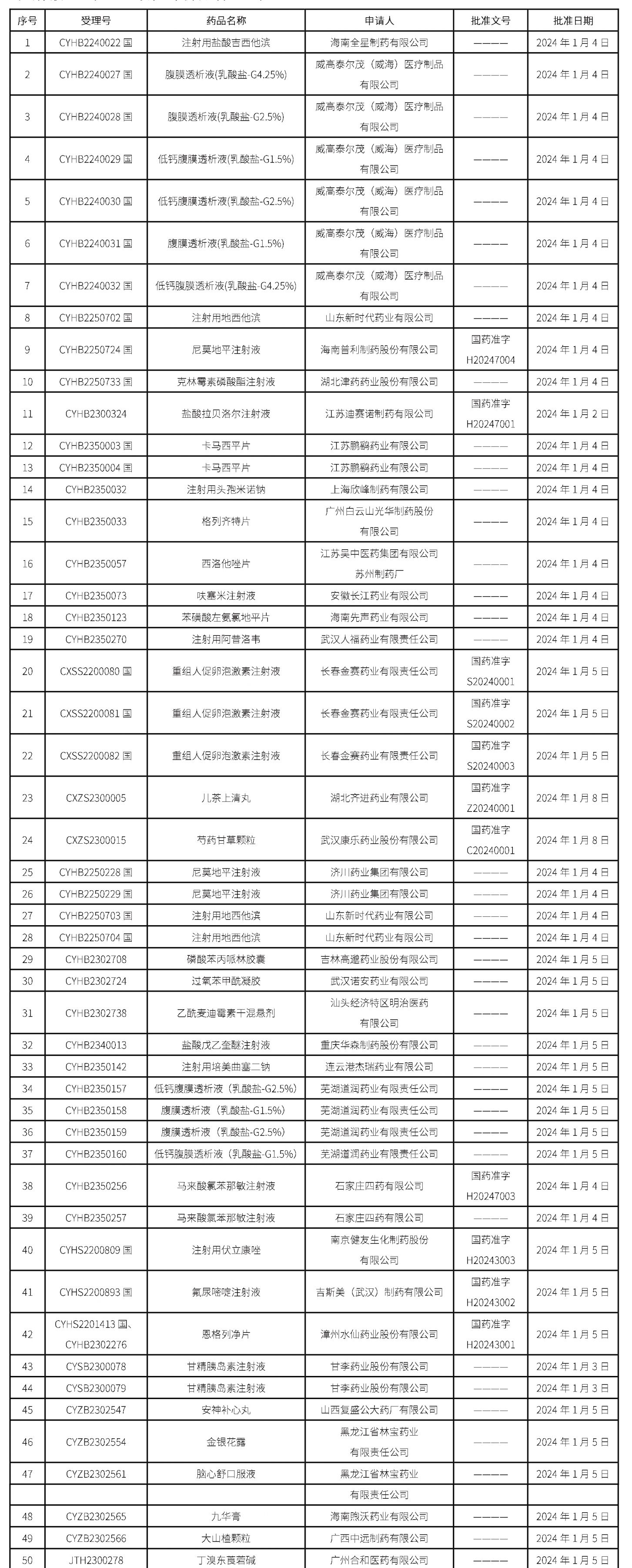截至2024年1月12日 15:00本周發(fā)布122個(gè)待領(lǐng)取藥品批準(zhǔn)證明文件,其中注射液48個(gè),一致性評(píng)價(jià)品種36個(gè)。