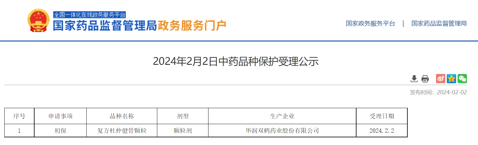 2024年2月2日中藥品種保護受理公示