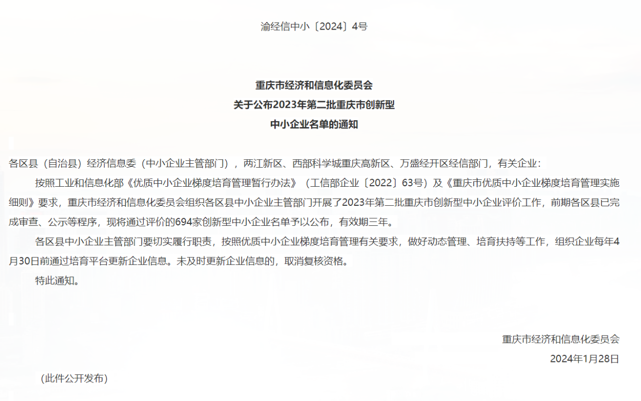 開工大吉 | 新領先(重慶)醫(yī)藥榮獲“重慶市創(chuàng)新型中小企業(yè)”稱號
