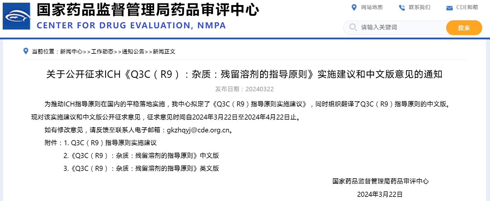 關(guān)于公開征求ICH《Q3C(R9):雜質(zhì):殘留溶劑的指導(dǎo)原則》實施建議和中文版意見的通知