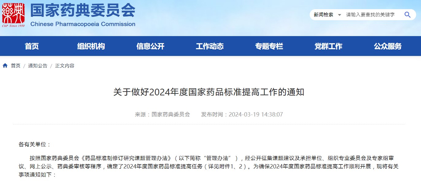 關(guān)于做好2024年度國家藥品標準提高工作的通知