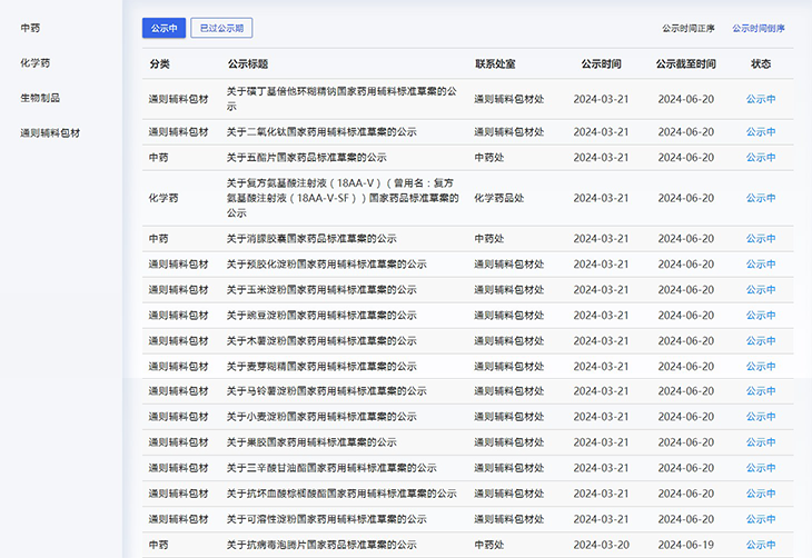 本周,藥典委發(fā)布的藥品及藥用輔料標準草案如下