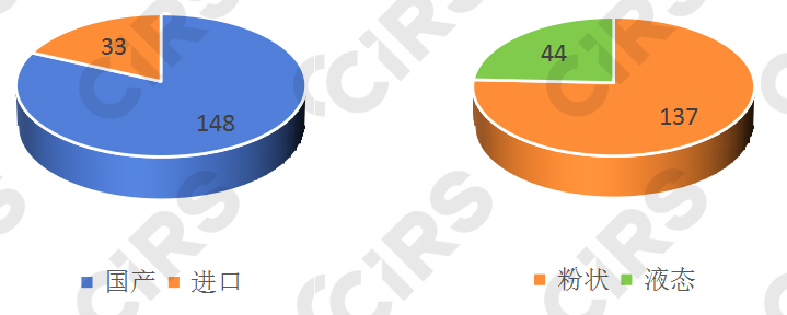 截至2024年4月1日,共計(jì)181款特醫(yī)食品注冊獲批,國產(chǎn)148款,進(jìn)口33款,國產(chǎn)產(chǎn)品注冊數(shù)量已遠(yuǎn)超進(jìn)口產(chǎn)品。在已批準(zhǔn)的181款產(chǎn)品中,粉狀產(chǎn)品居多,有137款產(chǎn)品的劑型為粉狀,其余44款為液態(tài)產(chǎn)品。
