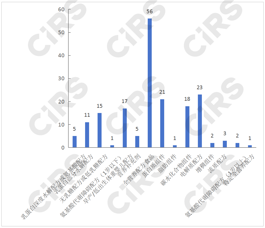 目前,已獲批產(chǎn)品中有54款為特殊醫(yī)學(xué)用途嬰兒配方食品,占到了總數(shù)的30%,包括5款乳蛋白深度水解配方或氨基酸配方、11款乳蛋白部分水解配方、15款無乳糖或低乳糖配方、1款氨基酸代謝障礙配方、17款早產(chǎn)/低出生體重嬰兒配方、5款營養(yǎng)補(bǔ)充劑;70款為非全營養(yǎng)配方食品,包括21款蛋白質(zhì)組件、1款脂肪組件、18款碳水化合物組件、23款電解質(zhì)配方、2款增稠組件、3款流質(zhì)配方、2款氨基酸代謝障礙配方(1歲以上),占總數(shù)的39%;56款為全營養(yǎng)配方食品,占總數(shù)的32%,包括9款全營養(yǎng)配方食品(1-10歲)和47款全營養(yǎng)配方食品(1歲以上);特定全營養(yǎng)配方食品僅有1款,為速熠素特殊醫(yī)學(xué)用途腫瘤全營養(yǎng)配方食品。