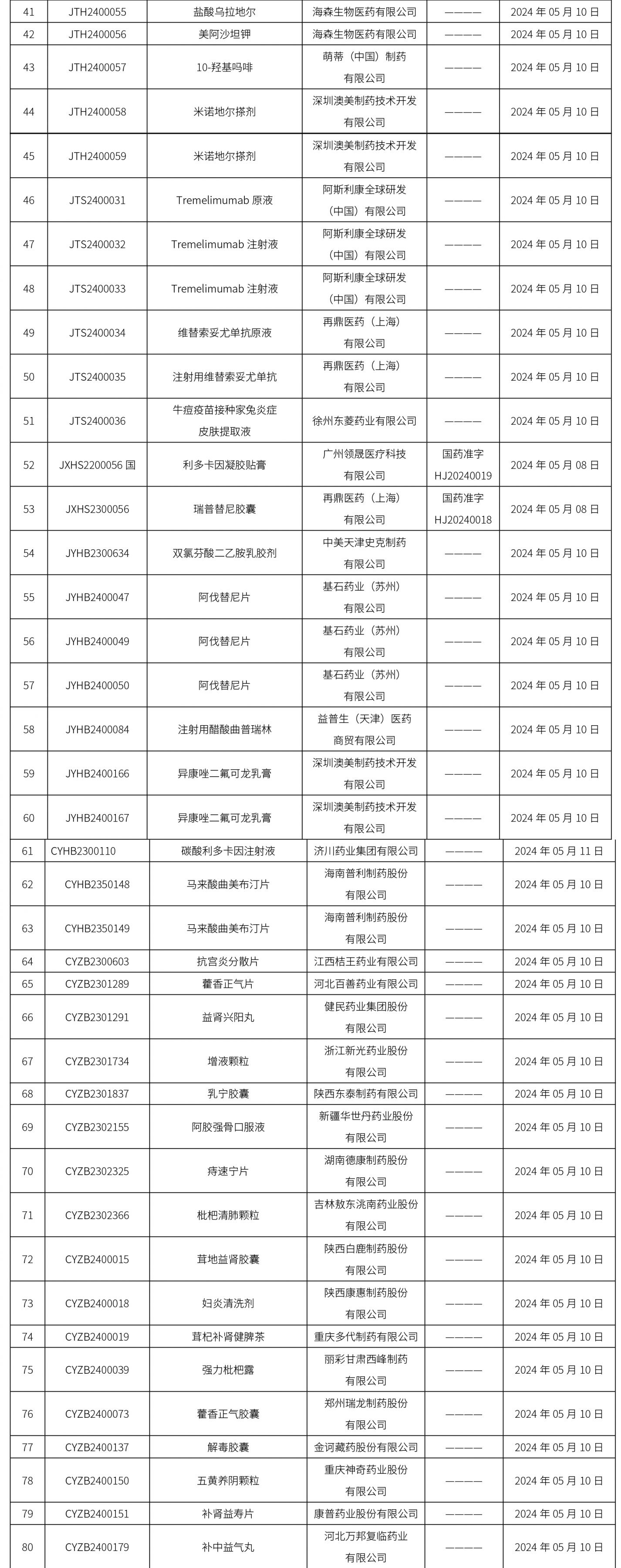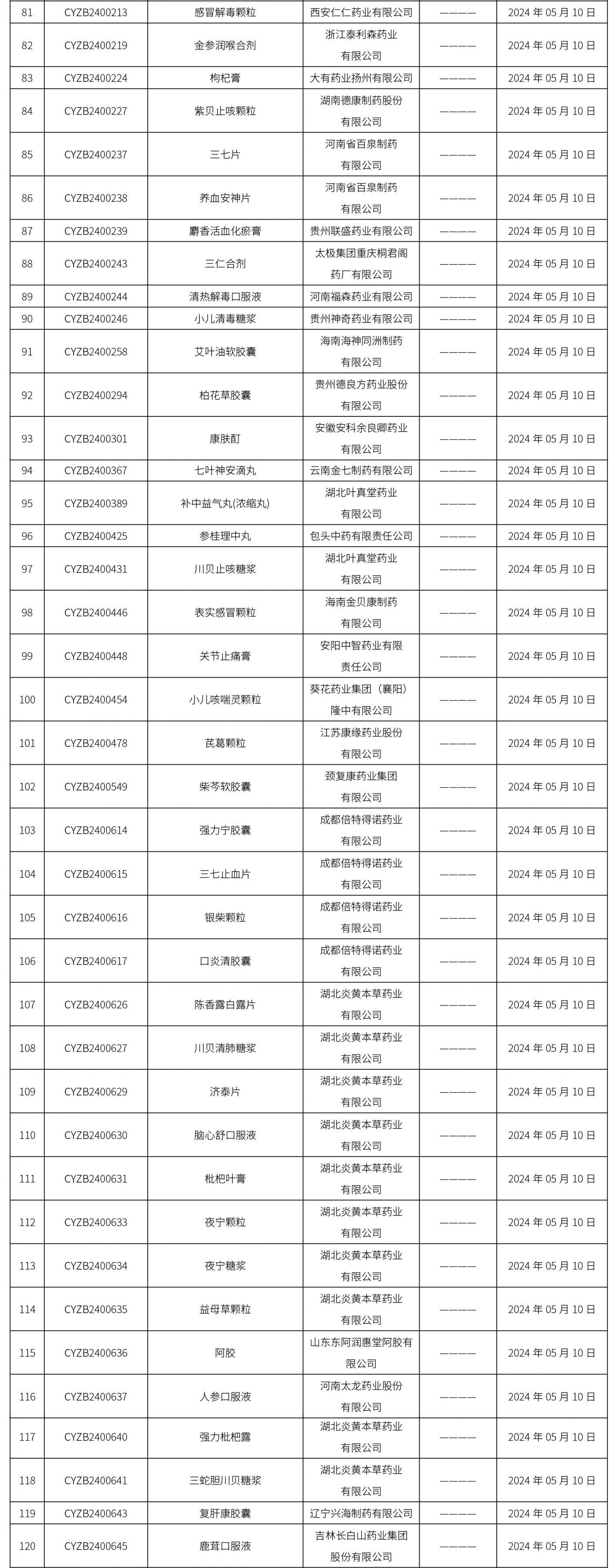 2024年05月11日中藥品種保護(hù)受理公示