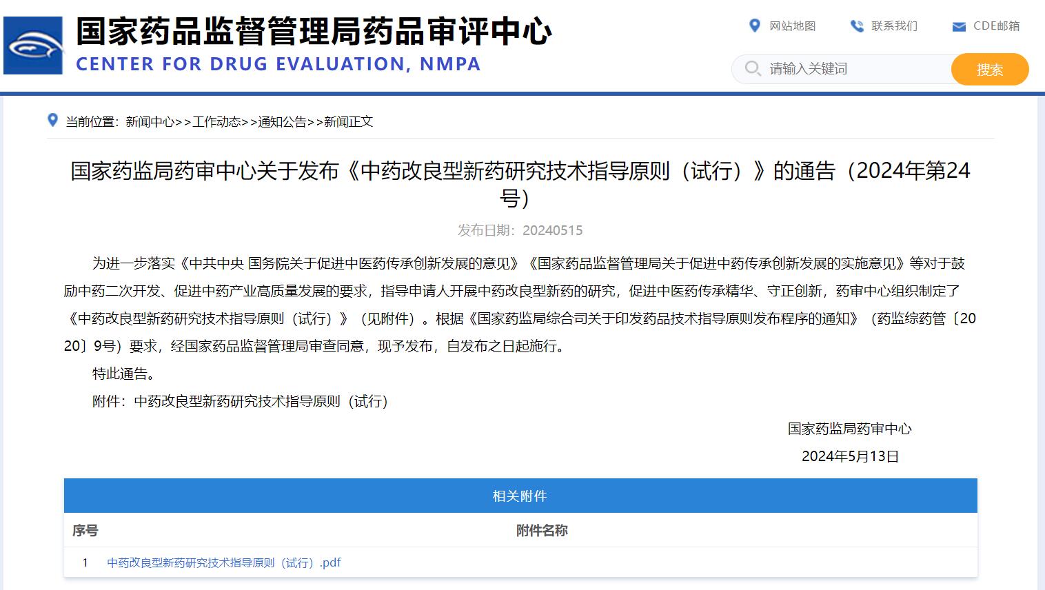 國(guó)家藥監(jiān)局藥審中心關(guān)于發(fā)布《中藥改良型新藥研究技術(shù)指導(dǎo)原則(試行)》的通告(2024年第24號(hào))