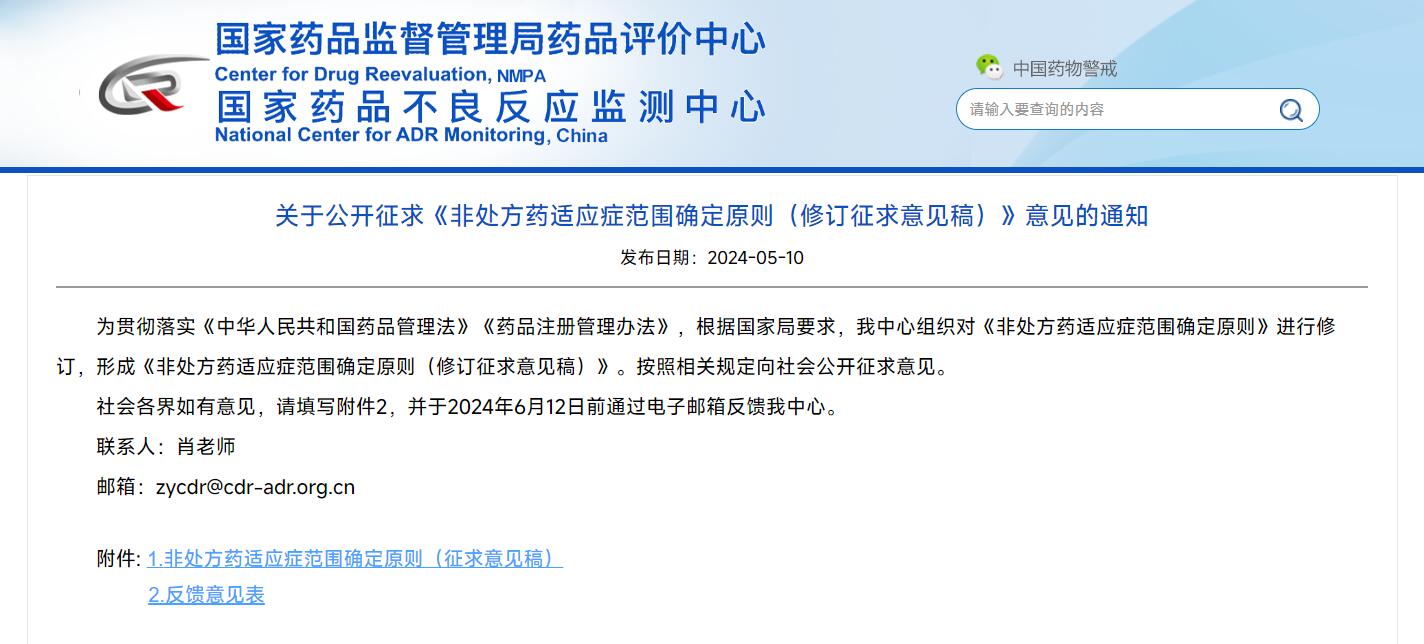 關(guān)于公開征求《非處方藥適應(yīng)癥范圍確定原則(修訂征求意見稿)》意見的通知