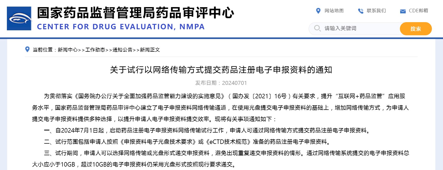關(guān)于試行以網(wǎng)絡(luò)傳輸方式提交藥品注冊(cè)電子申報(bào)資料的通知