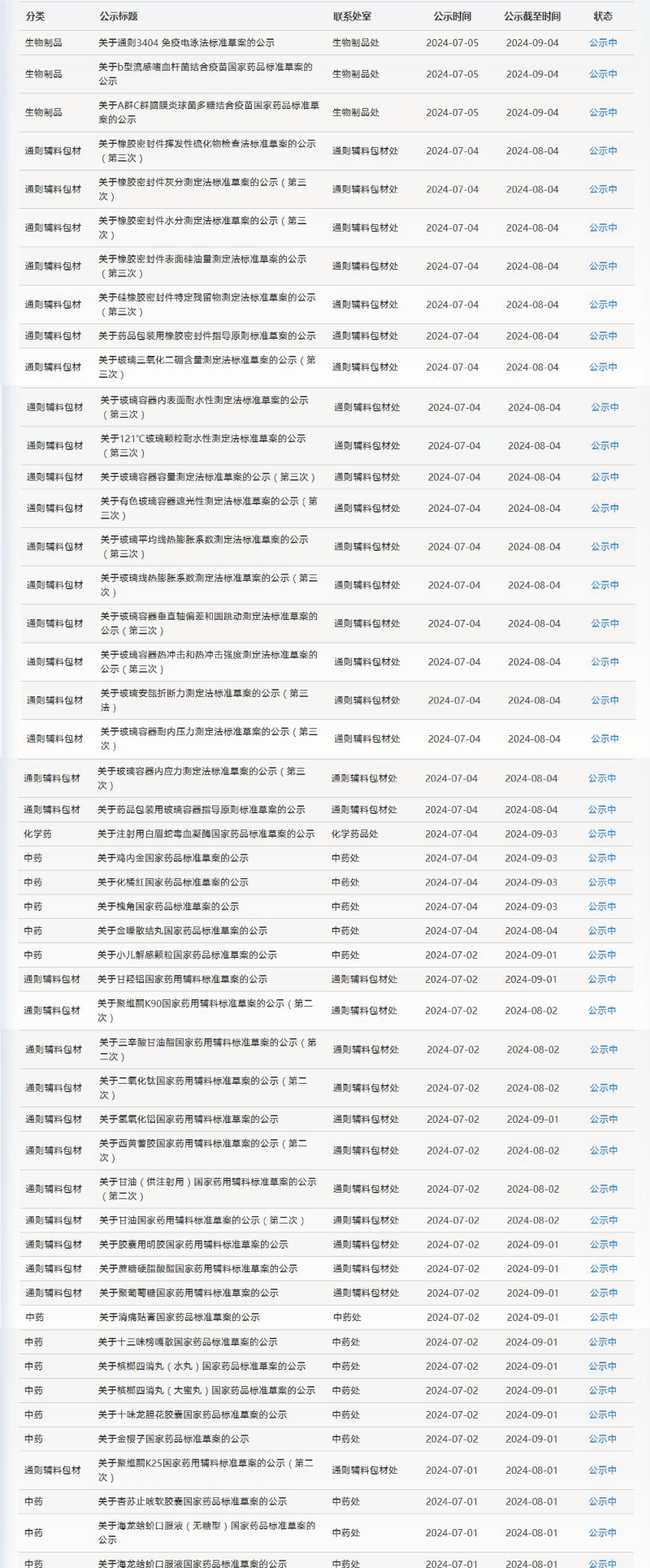本周,藥典委發(fā)布的標(biāo)準(zhǔn)草案公示如下:
