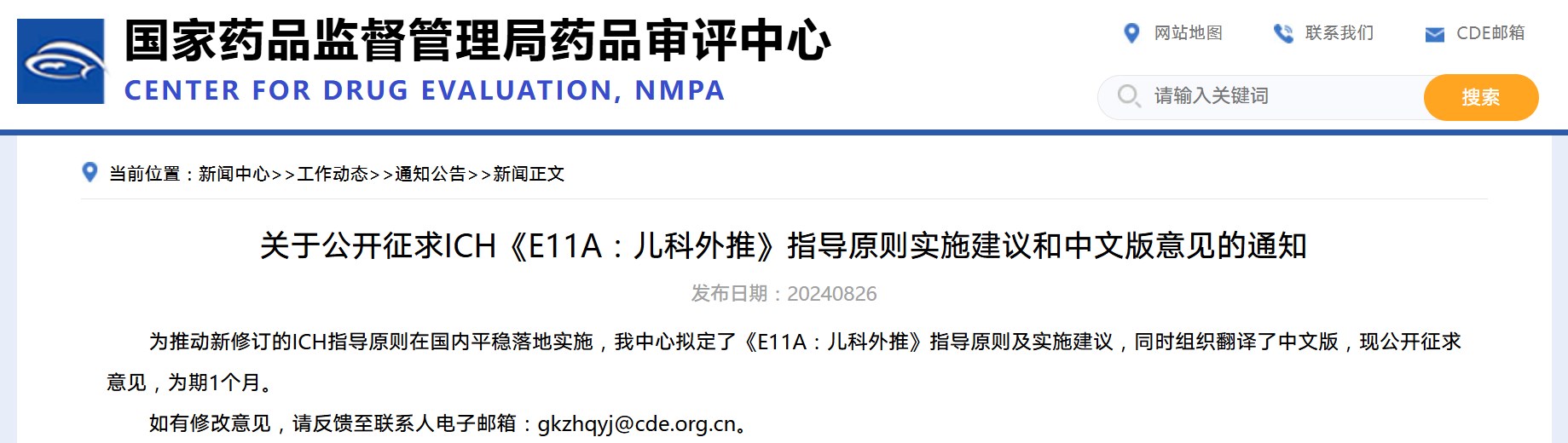 關(guān)于公開征求ICH《E11A:兒科外推》指導(dǎo)原則實(shí)施建議和中文版意見的通知
