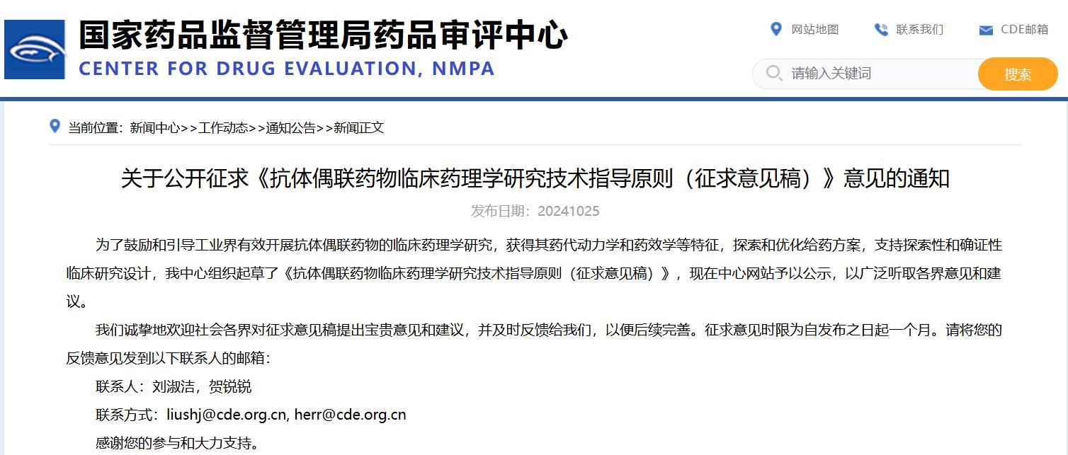 關(guān)于公開征求《抗體偶聯(lián)藥物臨床藥理學(xué)研究技術(shù)指導(dǎo)原則(征求意見稿)》意見的通知