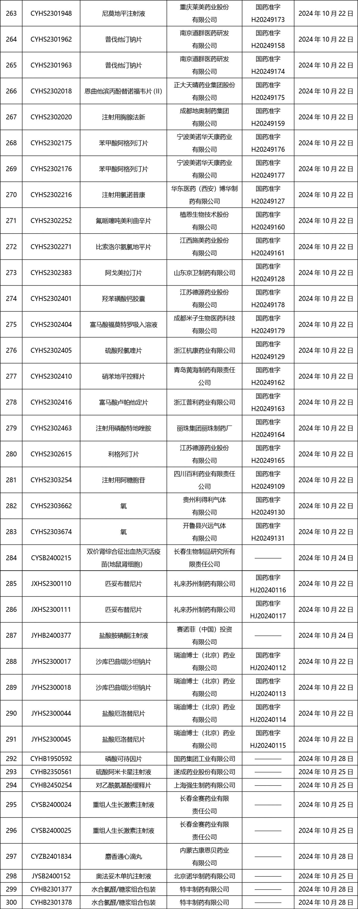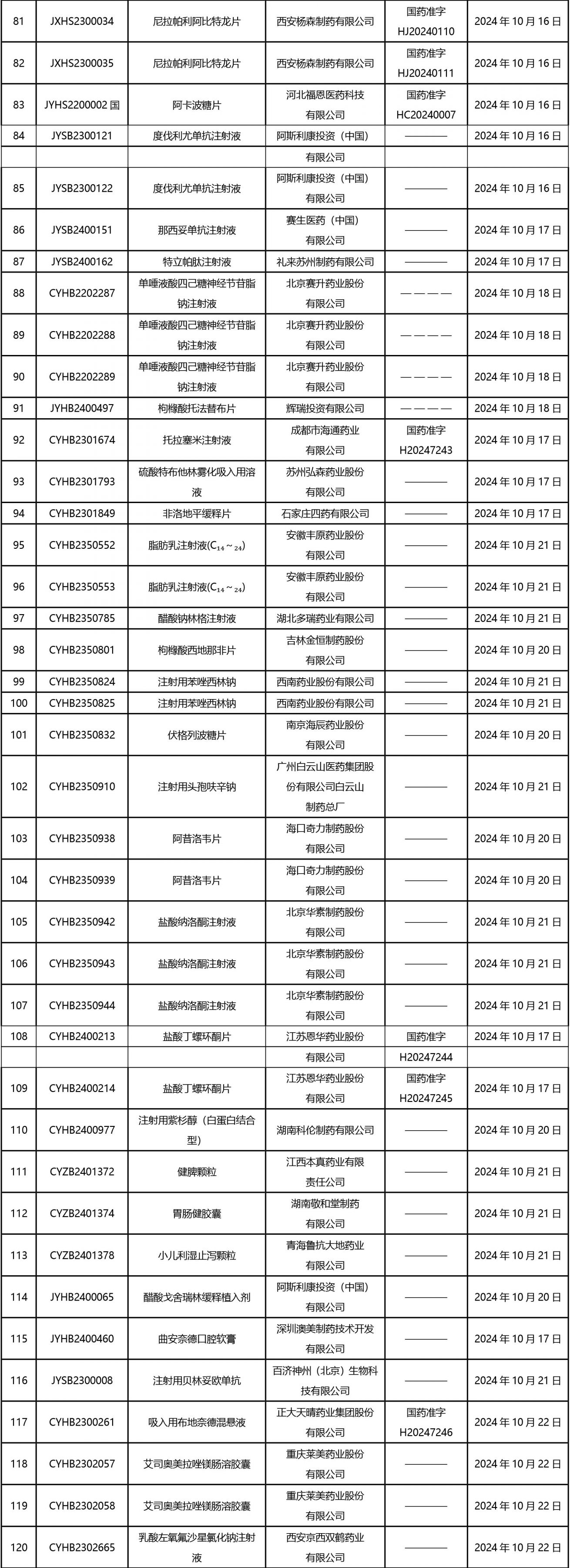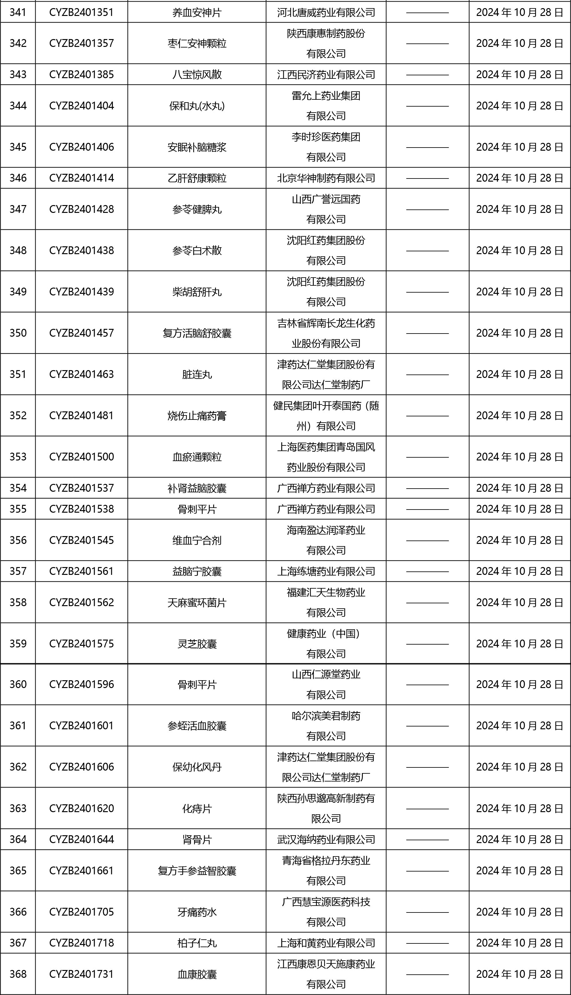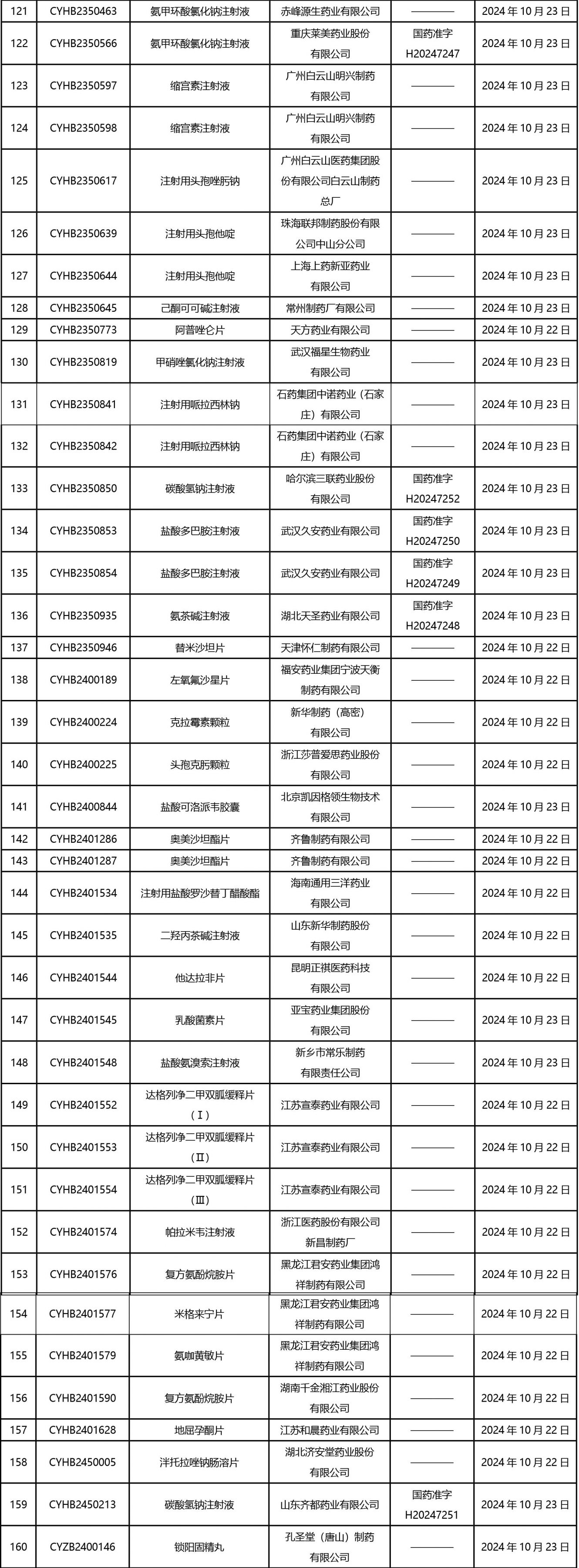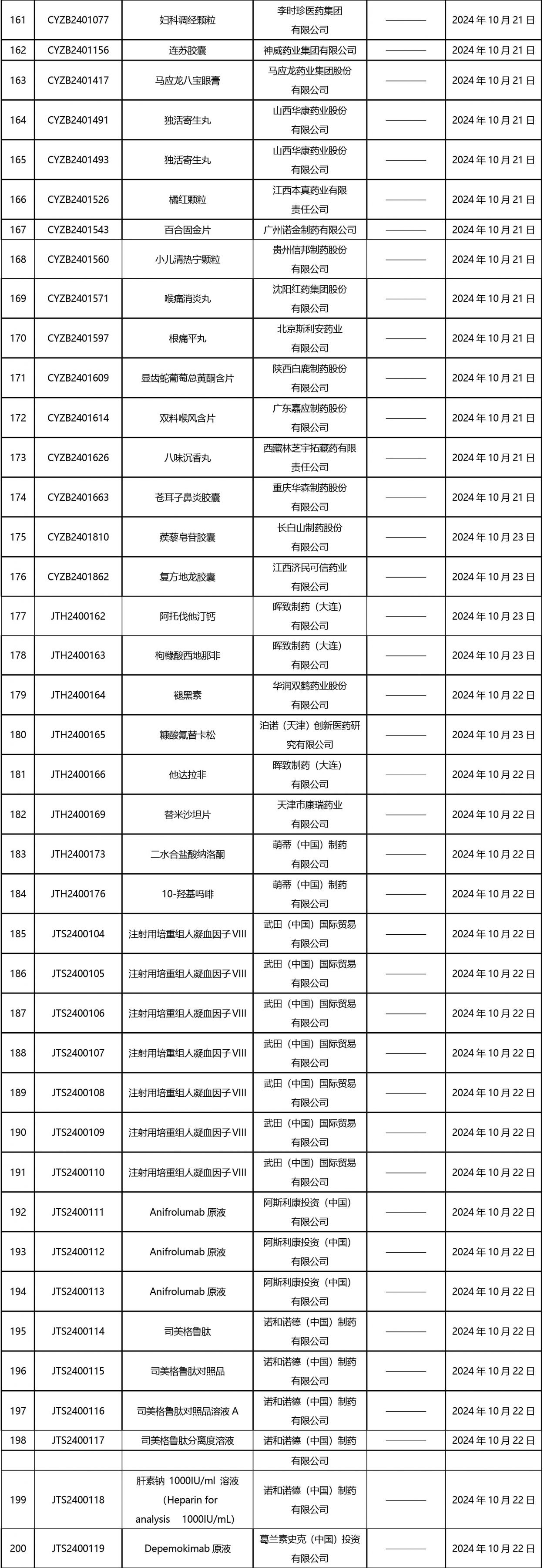 2024年10月21日至2024年11月1日 16:00發(fā)布368個待領(lǐng)取藥品批準證明文件,其中注射液125個,一致性評價品種45個。