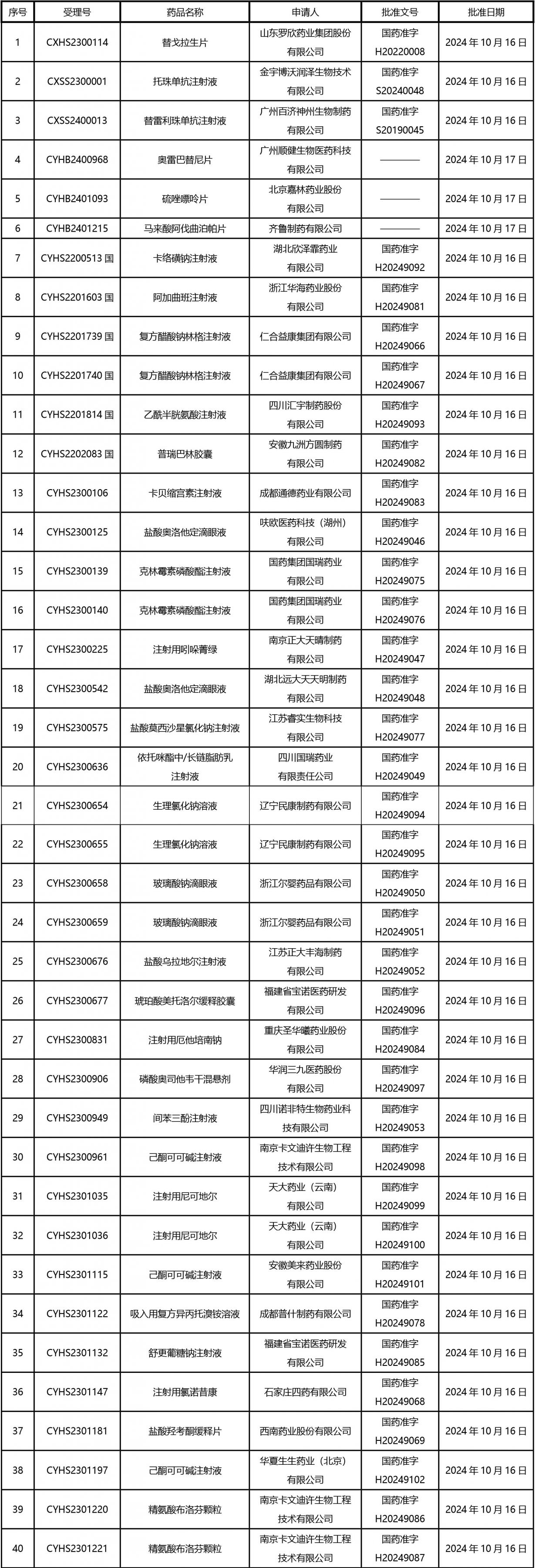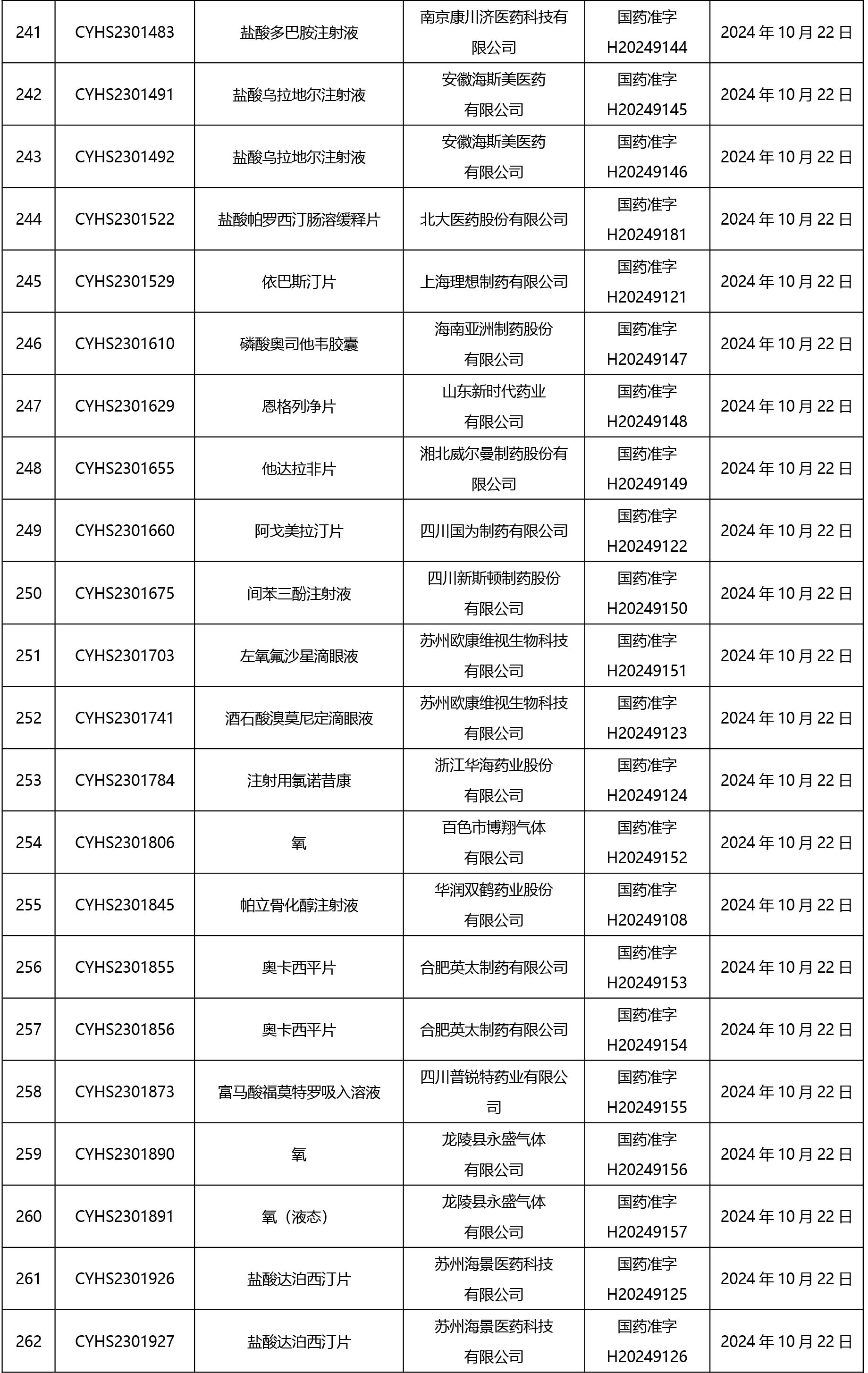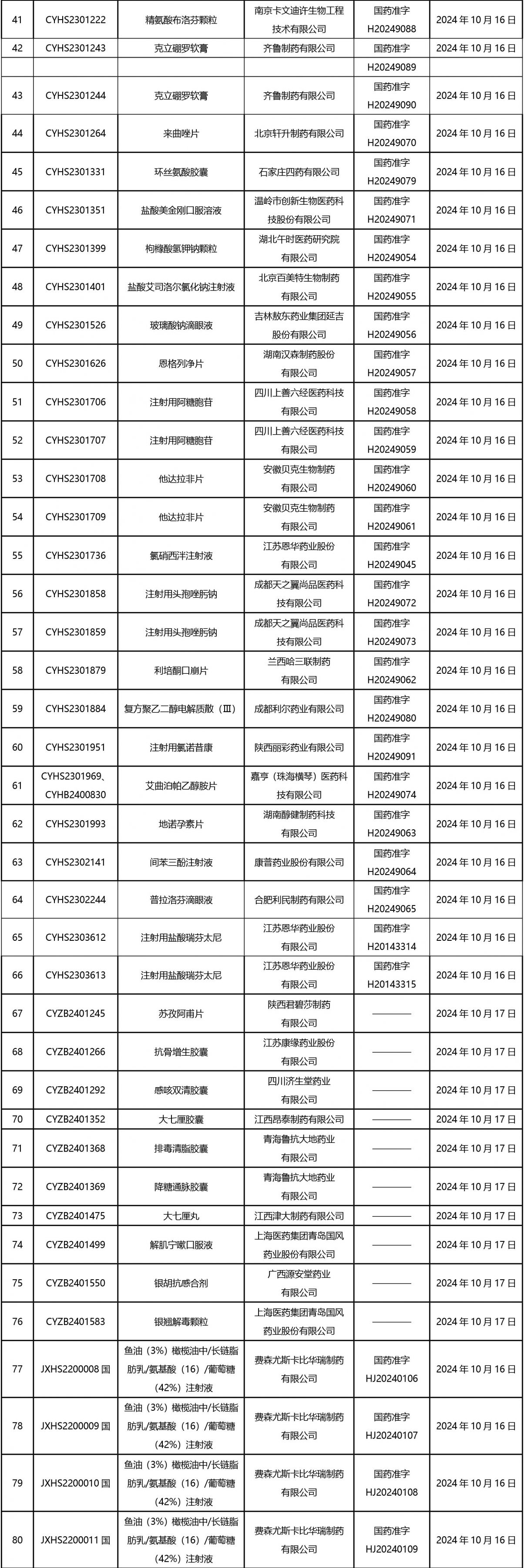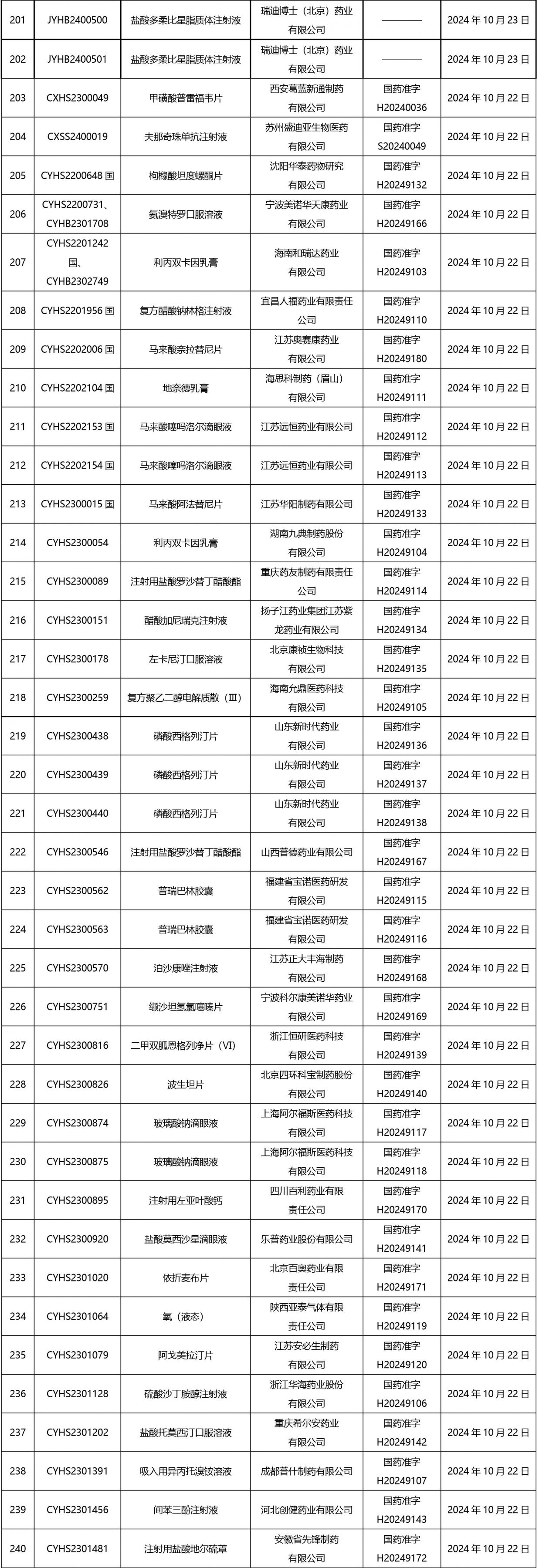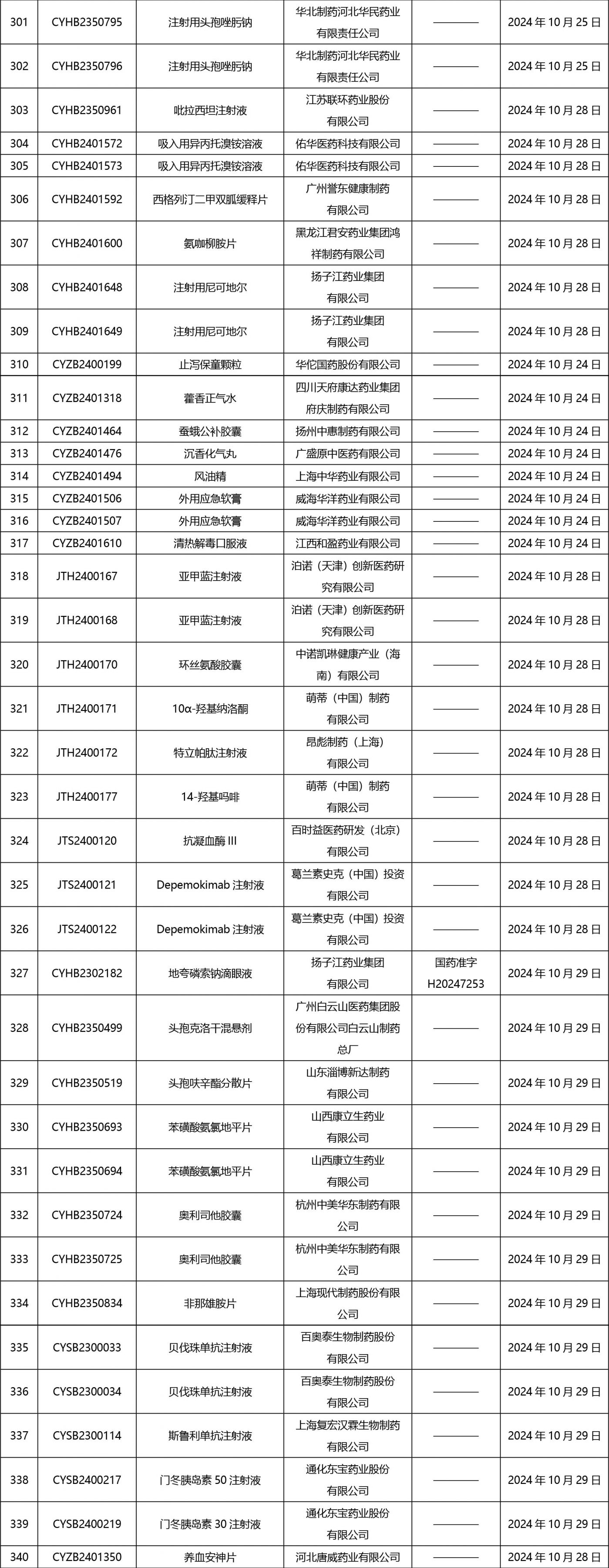 2024年10月21日至2024年11月1日 16:00發(fā)布368個待領(lǐng)取藥品批準證明文件,其中注射液125個,一致性評價品種45個。