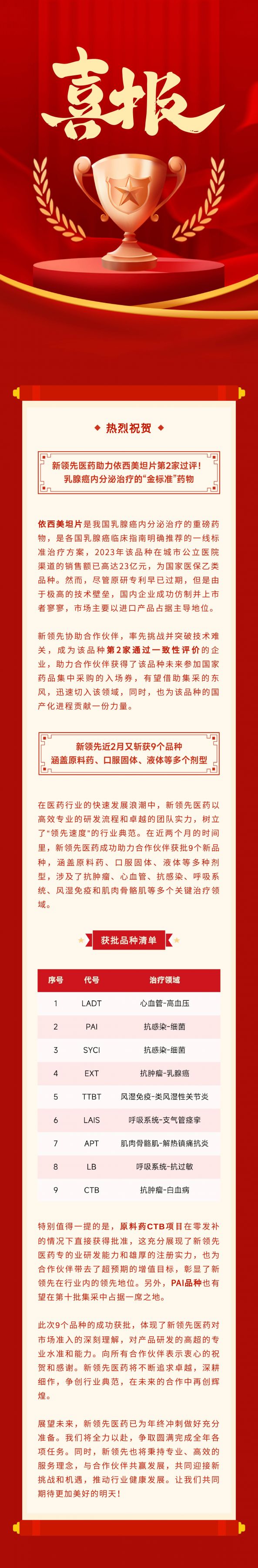 喜報(bào) | 乳腺癌內(nèi)分泌治療“金標(biāo)準(zhǔn)”藥物第2家過(guò)評(píng)!新領(lǐng)先醫(yī)藥近期又?jǐn)孬@9個(gè)批件!