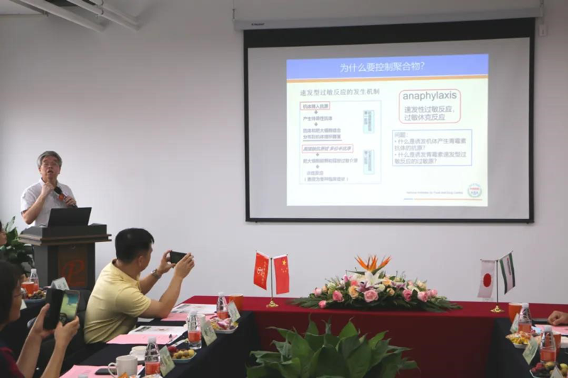 At the launching ceremony, the research team expert Mr. Changqin Hu gave a keynote speech titled "Current Status and Prospects of Antibiotic Polymer Research and Development". Mr.Hu introduced the development and research history of antibiotics in the past 100 years firstly , and explained in depth the mechanism of cephalosporin antibiotics causing allergic reactions, the polymerization characteristics of cephalosporins and the polymer structure, and the polymer impurities of β-lactam antibiotics The formation and development of the control strategy were analyzed in detail, and the guests present benefited a lot.
